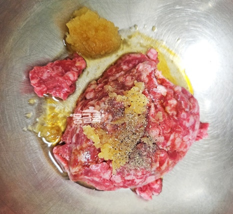 소고기 다짐육에 간장, 다진 마늘, 맛술, 후추를 넣고