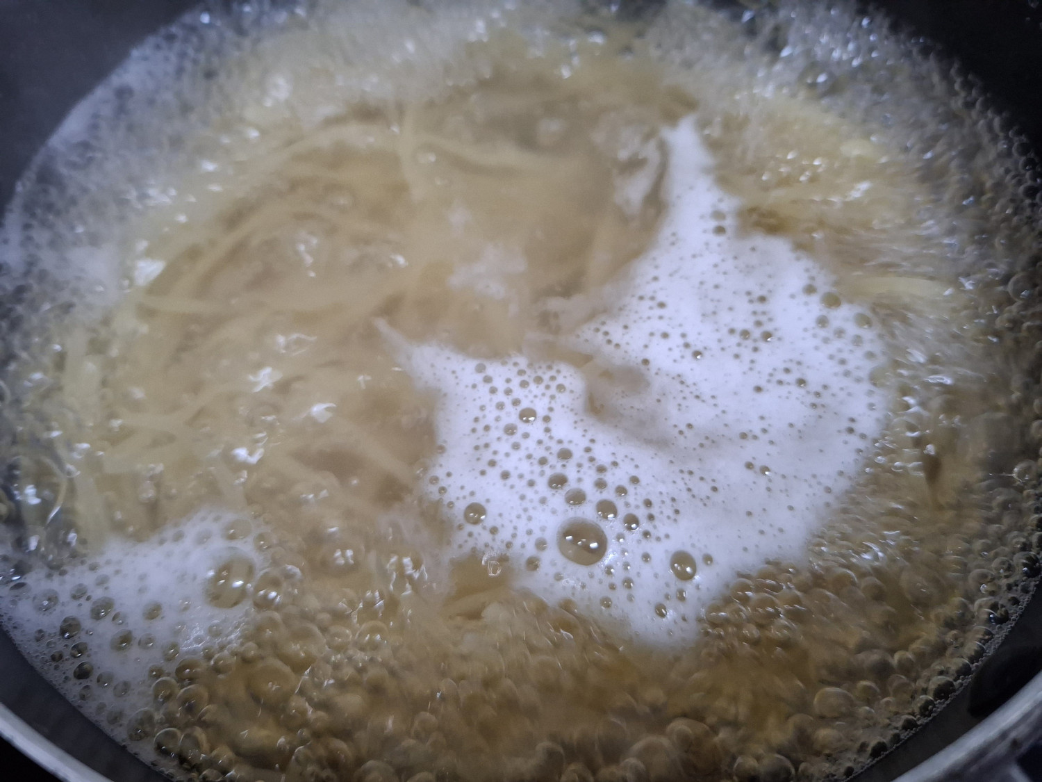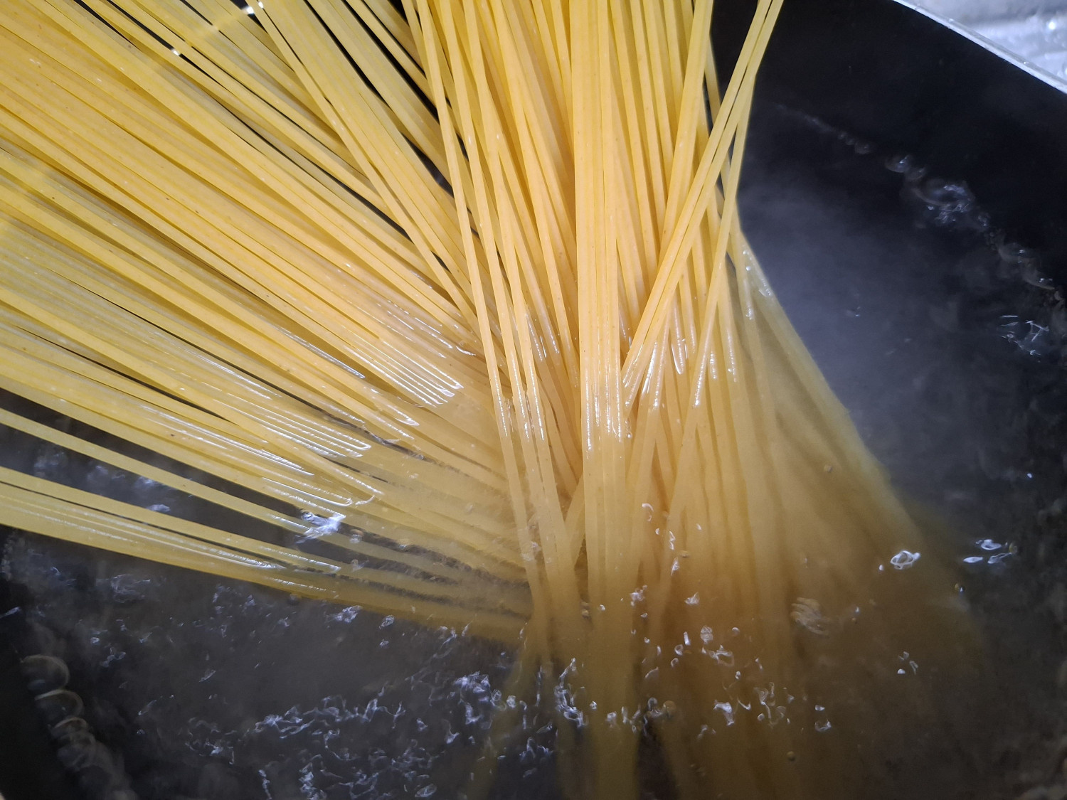 그리고 물이 끓으면 파스타면을 넣고 약 6분간 삶아줍니다.