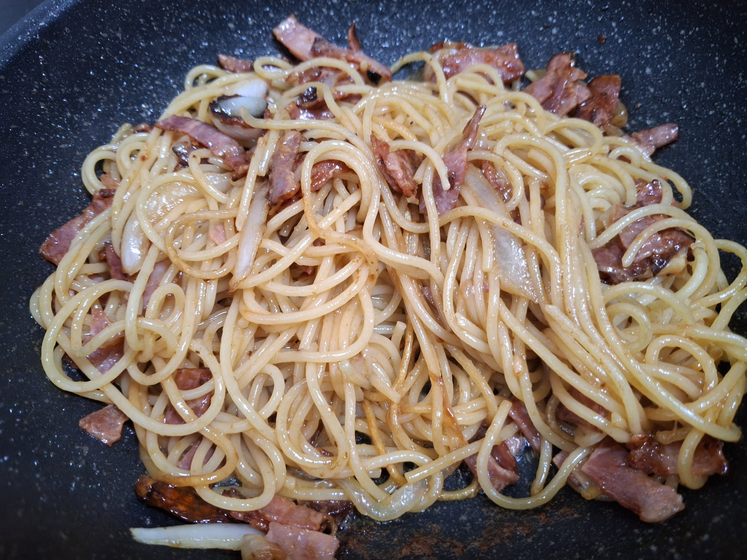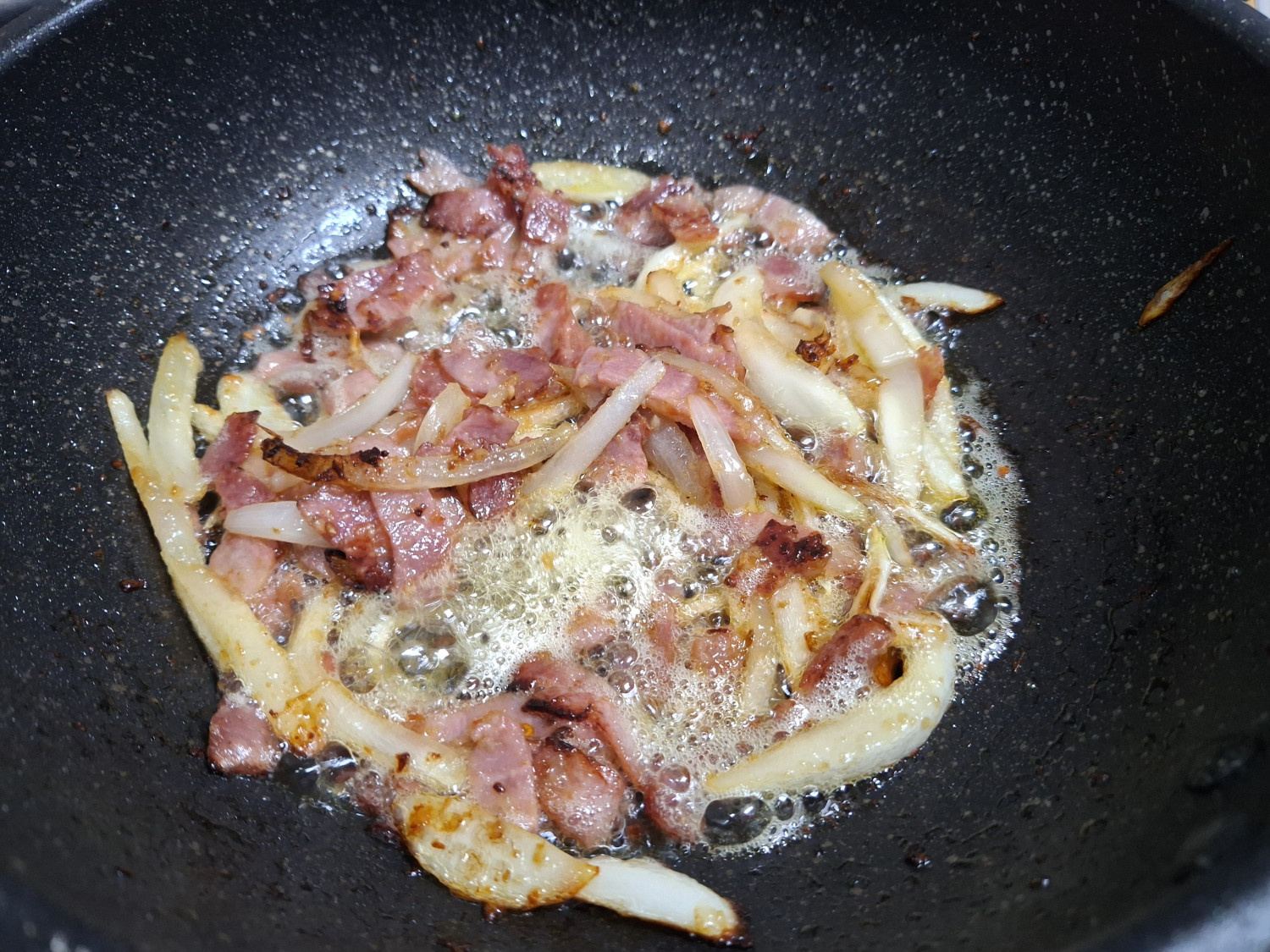 썰어둔 양파와 베이컨을 넣어줍니다.