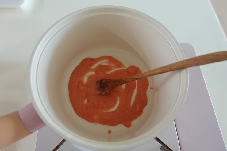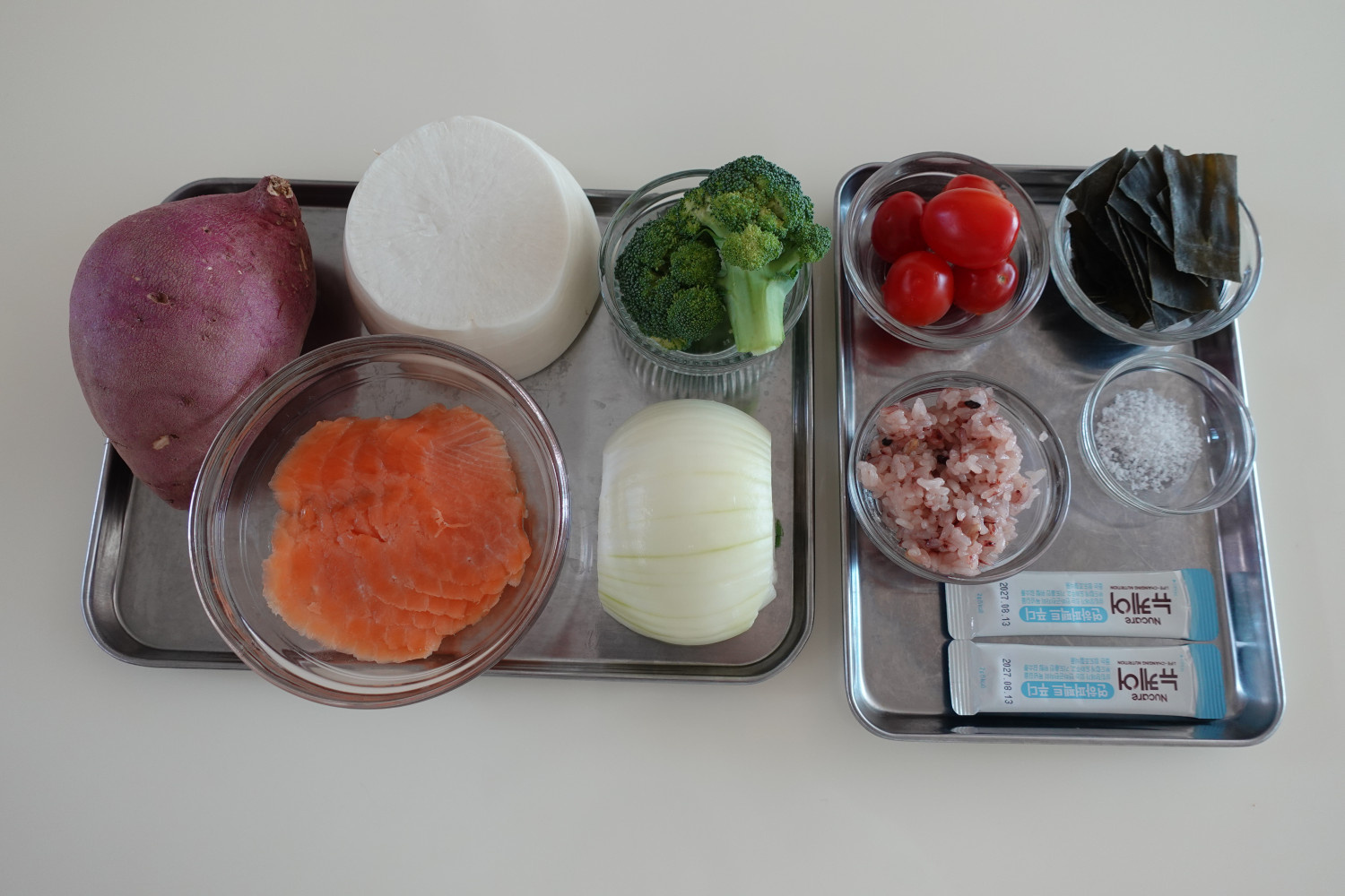 그래서 집에서 자주 먹던 군고구마와 채소를 활용해 영양죽으로 만들고, 연어와 무도 함께 갈아 부드럽게 구성해 보았습니다. 씹기 편하면서도 색감과 형태를 살려, 식탁 위에서 조금 더 먹음직스럽게 보이도록 신경 썼습니다.