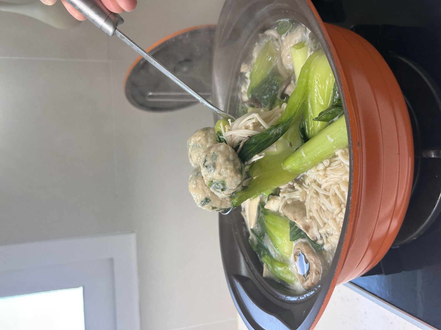 버섯, 청경채, 대파, 만두
