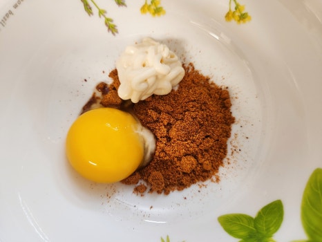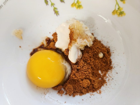 그리고 계란 노른자 1큰술, 다진마늘 1/2큰술 넣어서 미리 잘 섞어 주세요.