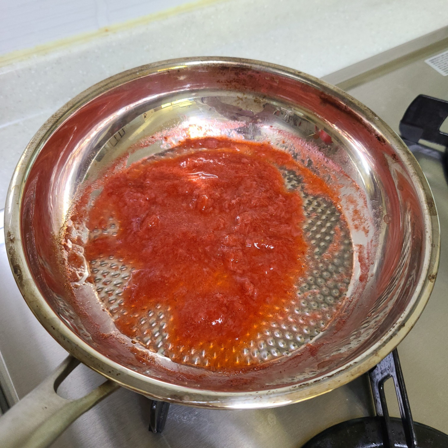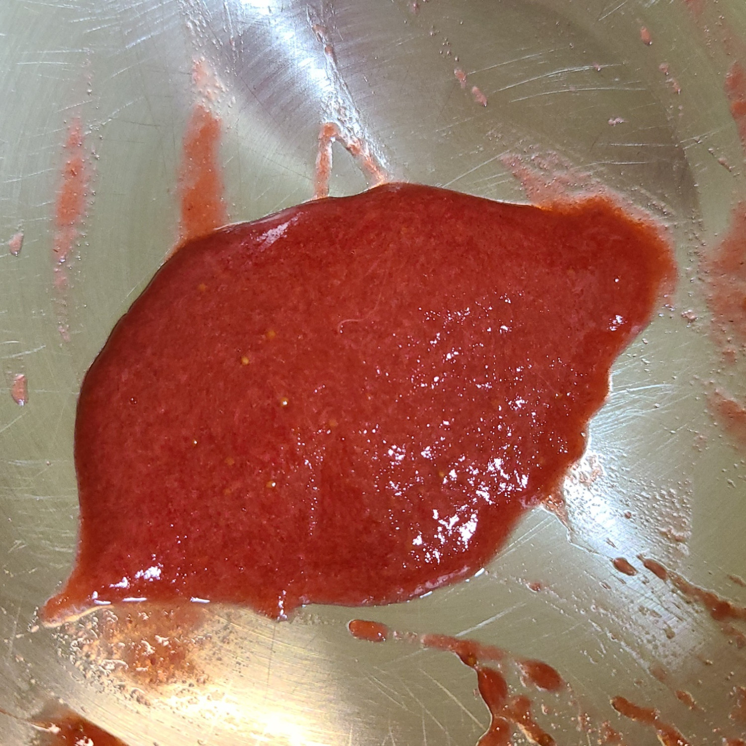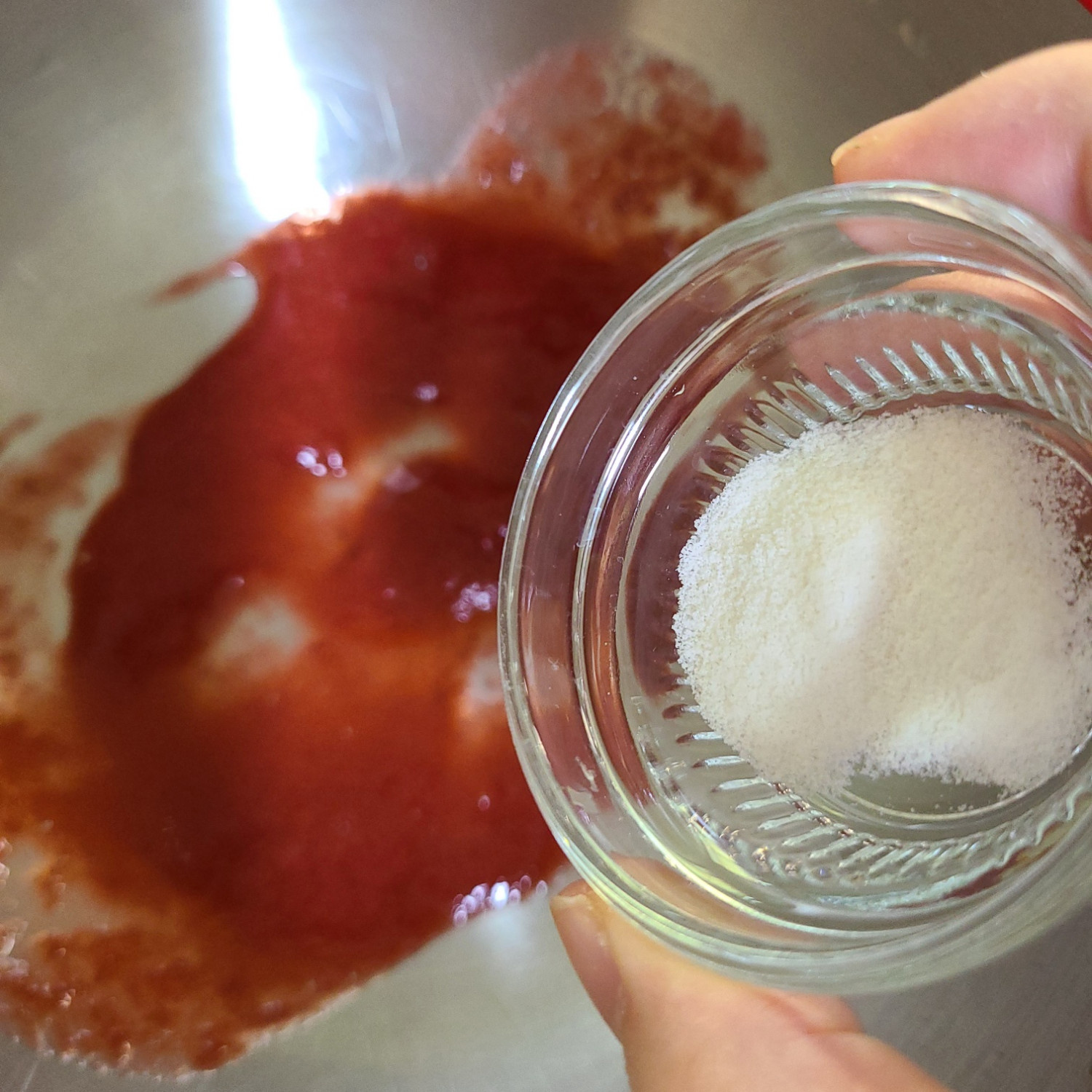 냉동딸기는 잘게 다져서 약불에서 물과 함께 으깨주시며 졸여주세요 물은 15ml 이상으로 넣음 냉동딸기에서 물이 나오기 때문에