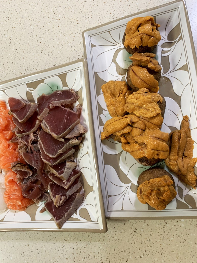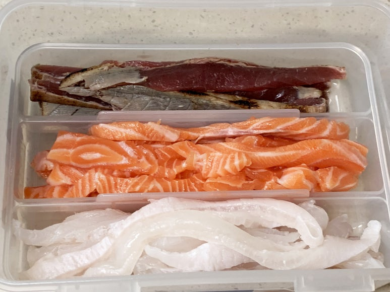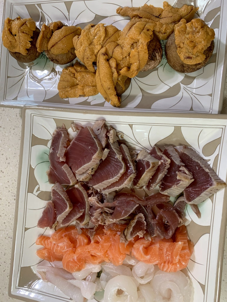 참치타다끼, 연어회, 광어회가 준비가 되었습니다.
