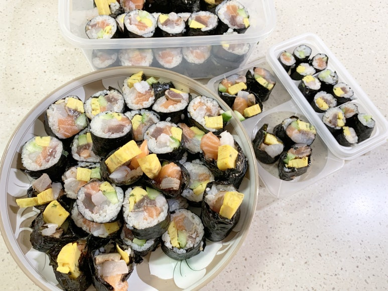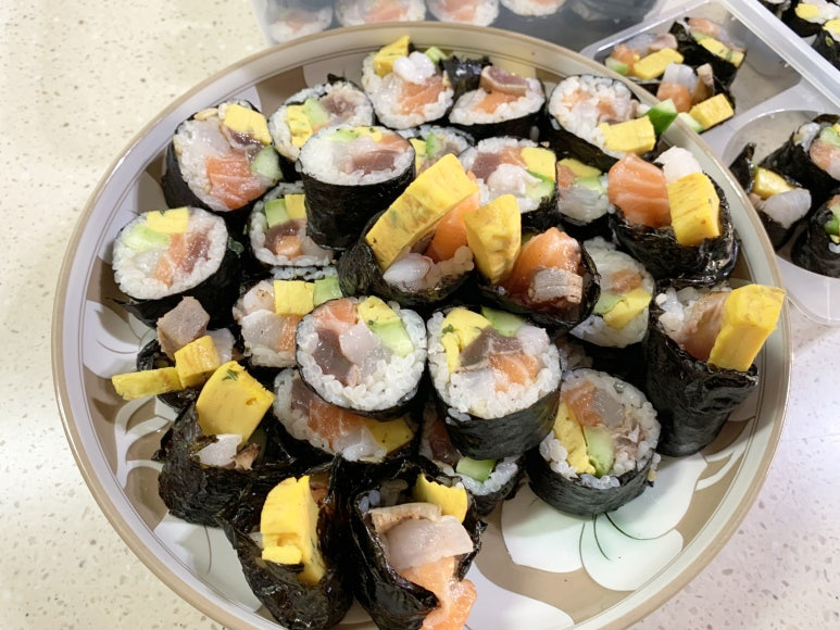 조그마한 꼬마김밥같은 것은 회를 한종류씩만 넣어 주고,