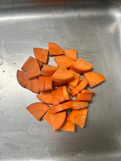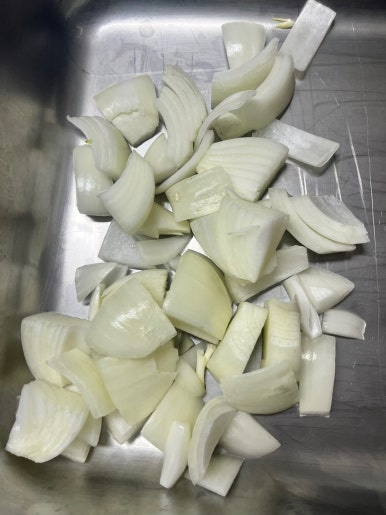 양파와 당근은 볼어묵과 비슷한 크기로 한 입에 먹기 좋게 썰어줍니다. 간장 1큰술과 설탕 1큰술은 미리 섞어서 준비해 주세요.
