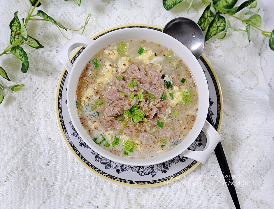 부드럽고 고소하고 맛있는 오트밀죽 끓이는 법 참치죽 레시피 완성입니다