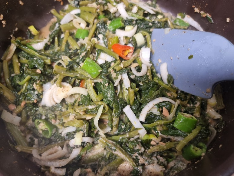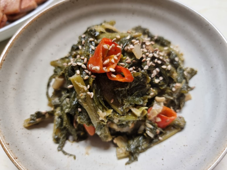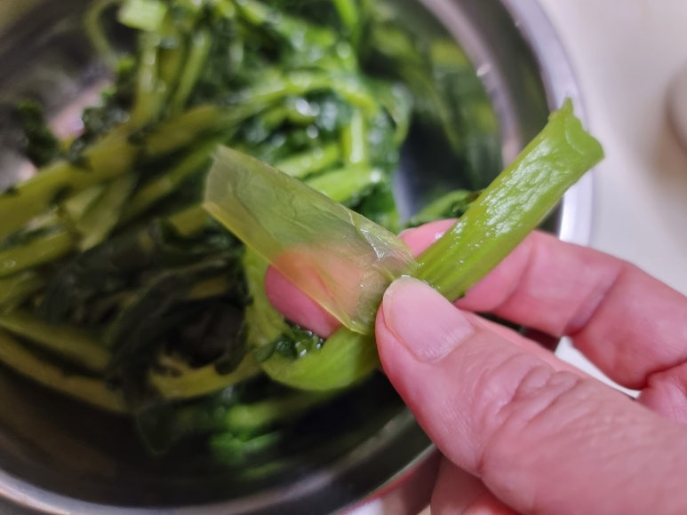 시래기 껍질을 벗기면 부드러운 식감을 즐길 수 있습니다.