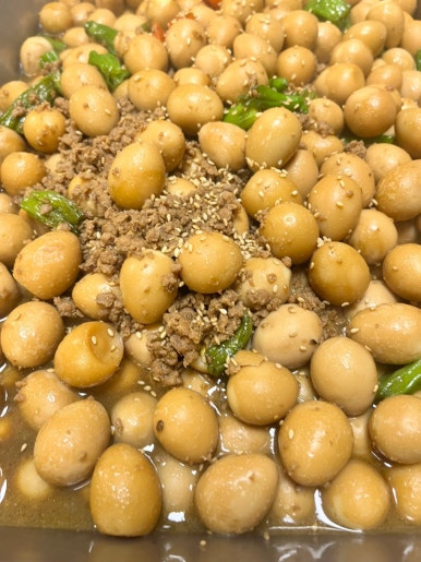 너무 자주 저으면 메추리알이 터질 수 있으니 팬을 흔들거나 숟가락으로 국물을 끼얹어주세요.
