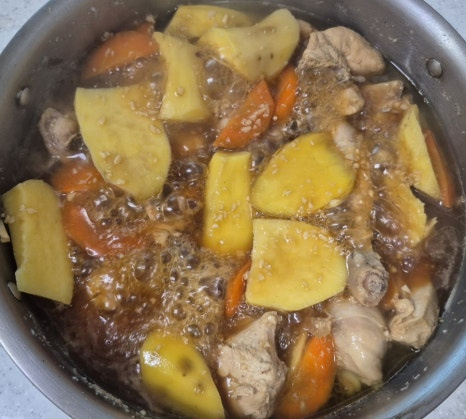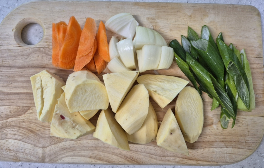 고구마는 얇게 써는 것보다 약간 두툼하게 썰어야 잘 부서지지 않아요.
