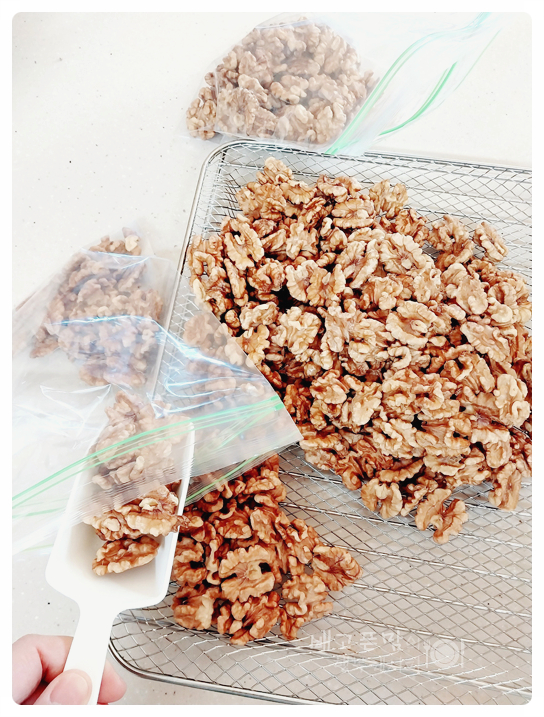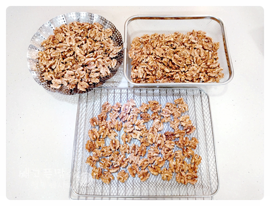 호두는 식힌 망에 올려 충분히 식혀 줍니다.