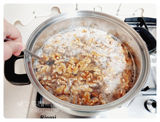 그리고 바삭하게 전처리한 호두 살을 잘라 넣고