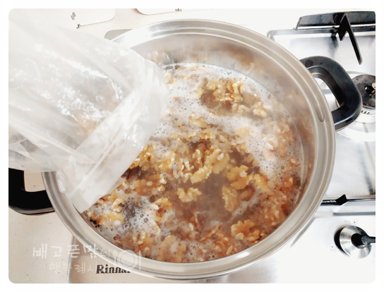 그리고 센 불에서 물이 고르게 팔팔 끓으면