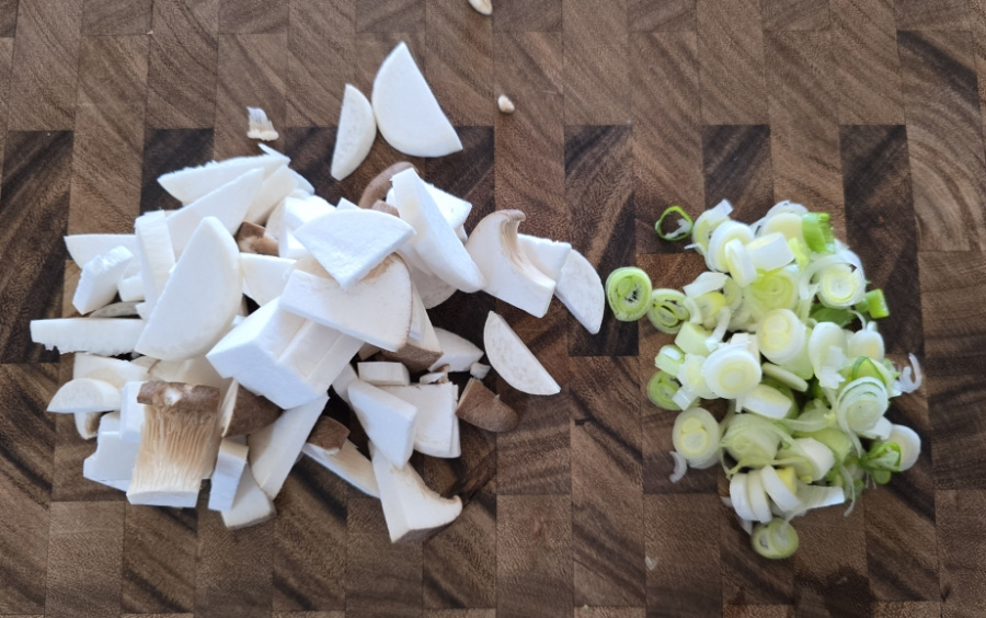 - 떡국 떡 500g 새송이버섯 1개 or 느타리 버섯 표고버섯 등 대파 1/2대 들깨가루 3 다진 마늘 0.8 국간장 1 참치 액 0.5 물 1L 코인 육수 2알 김가루 약간 , 지단 : 계란 1개 , 계량 : 밥숟가락 계량컵