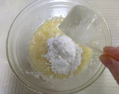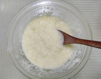보통 감자 전은 건더기와 전분을 분리해서 만들지만 오늘은 그냥 강판에 갈아놓은 것에 감자 전분 100ml를 넣어서 반죽을 만들어놓아요