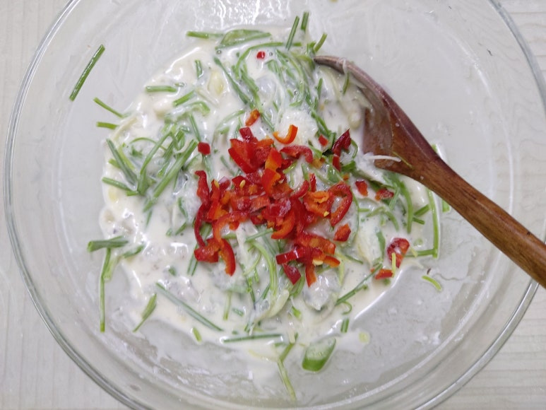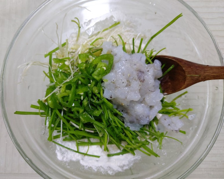 달래는 봄의 전령사인데 요즘은 하우스재배로 사시사철 맛볼 수 있게 되었지요 풋풋하고 쌉싸래한 달래와 부드럽고 달콤한 새우를 섞어 노릇하게 전으로 부쳐 보세요 봄기운이 입안 가득 퍼져 더욱 기분이 좋아질 거예요 달래는 톡 쏘는 매운맛과 향은 알리신 성분을 함유하고 있어서 원기회복과 자양강장에 효과가 있습니다