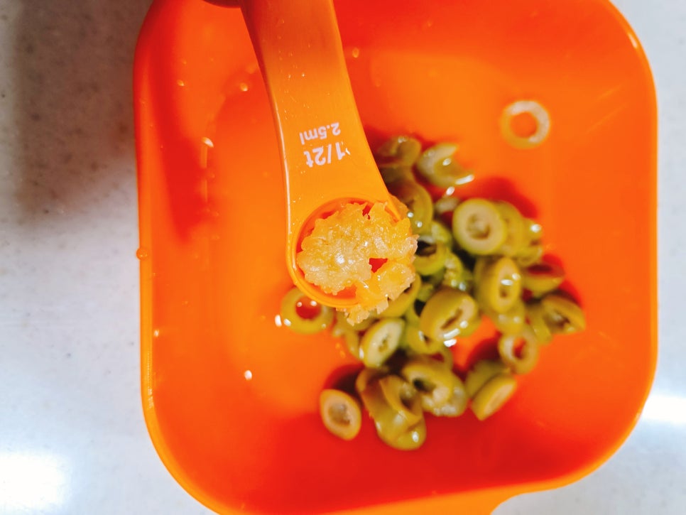 올리브는 채썰어서 준비해주세요
