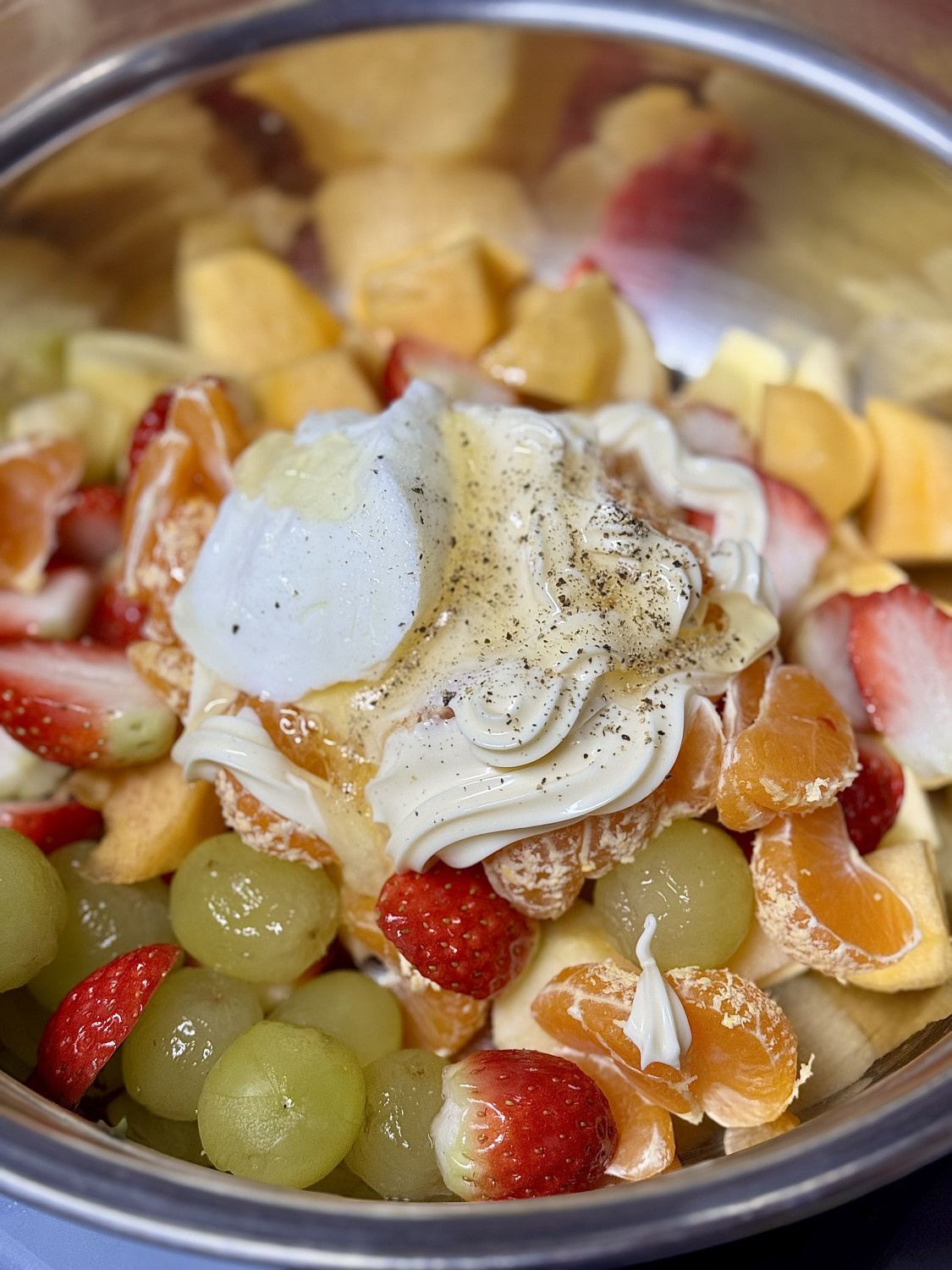 딸기나 바나나, 키위가 들어가는 경우 재료들이 뭉개지지 않도록 살살 버무려주세요.
