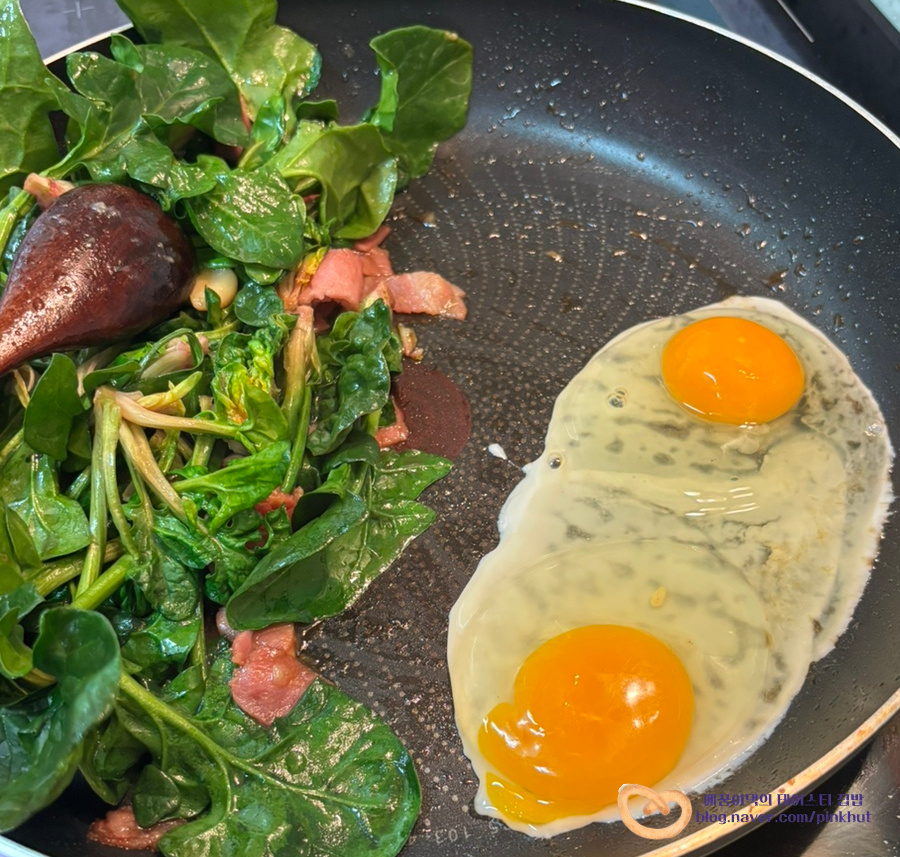 요즘 제철을 맞은 시금치, 영양가 풍부한 계란, 베이컨을 활용해서 만드는 섬초베이컨 덮밥 레시피인데요.