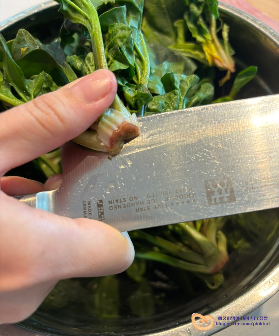 먹기 좋게 4등분 또는 어린아이들은 한가닥씩 쪼개어주면 시금치 손질 끝이에요.