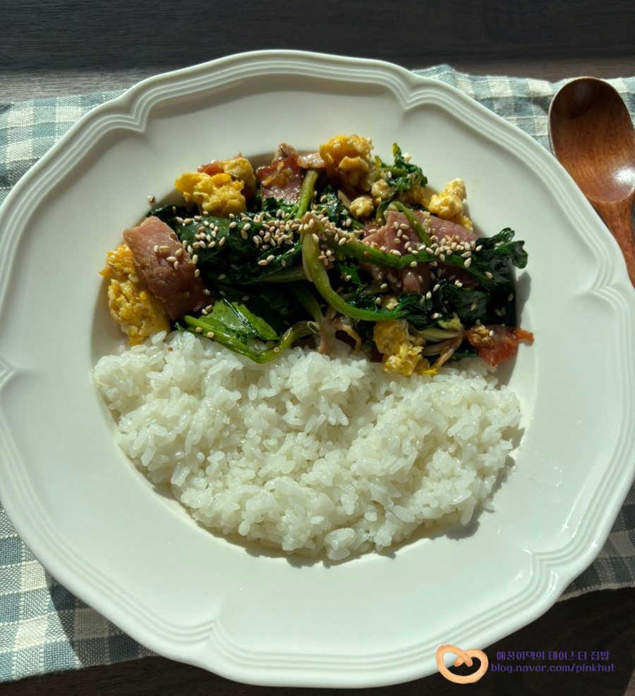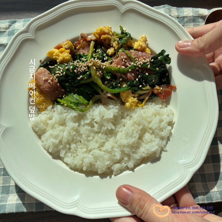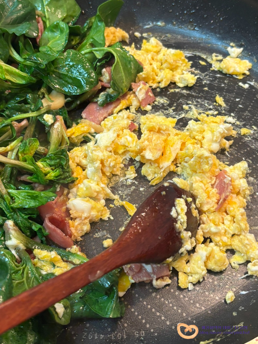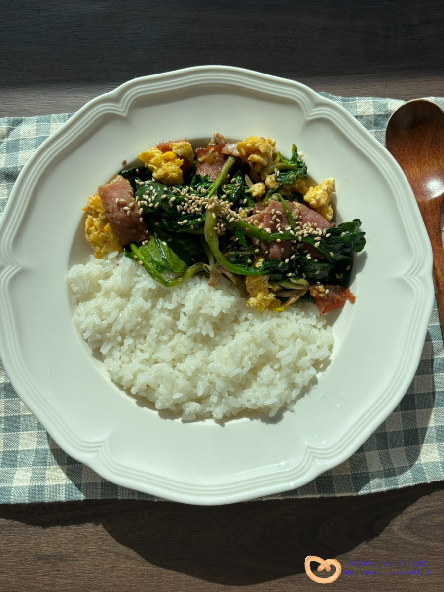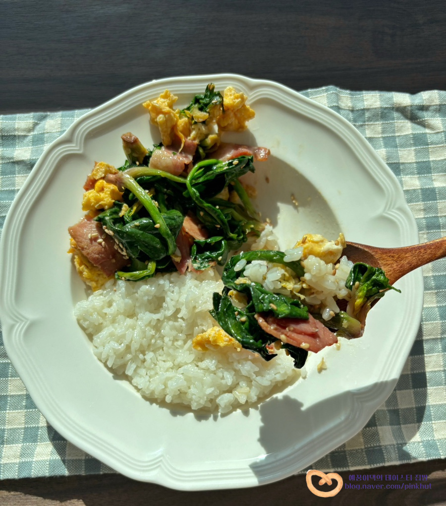 시금치 베이컨 계란스크램블 덮밥 레시피 5분 완성 초등 어린이 메뉴 추천!