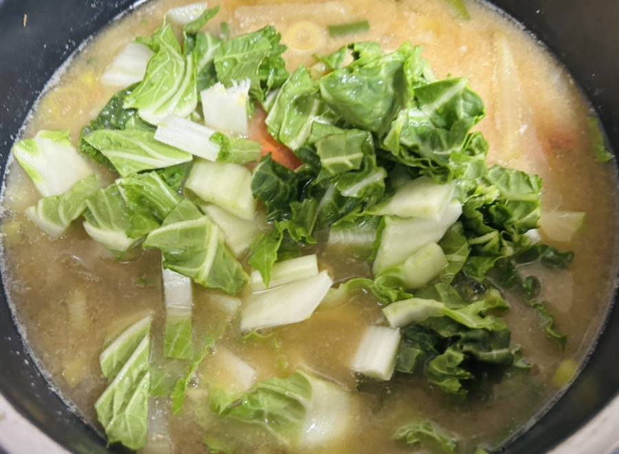 파릇한 봄동이 산뜻하면서 모든 재료들이 우러난 국물의 감칠맛이 너무 좋고 시원하면서도 구수한 미소된장국이예요.