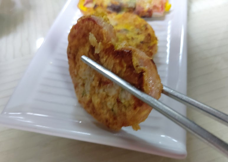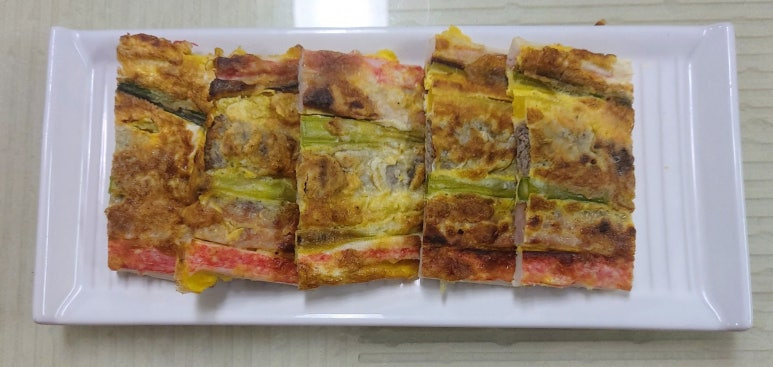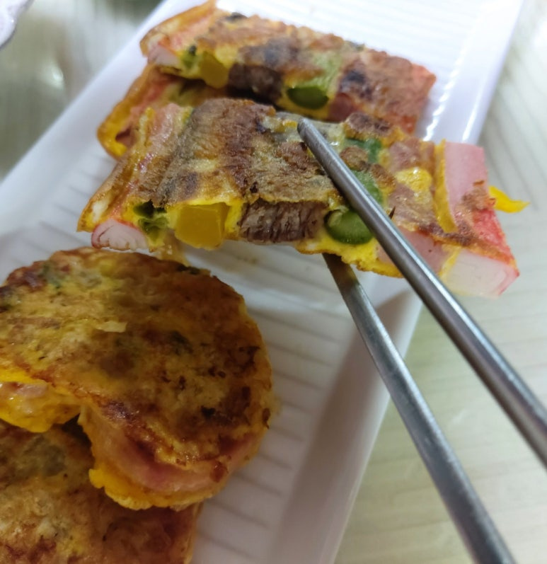 사실 저희는 편식 가족으로 먹는 전만 먹어서 오색 꼬치전은 잘 안 해 먹어요 색은 이쁜데 생각보다 맛있진 않거든요 명절도 다가오고 해서 오늘은 소고기에 양념해서 한 줄 끼워서 만들었어요 소고기 넣으면 조금 맛있거든요 이웃님들 손이 많이 가는 꼬치전이지만 오늘은 쉬운 방법이 있어서 조금만 만들어 올립니다 요건 사각 후라이팬이 꼬~옥 있어야 해요 맛살이 남아서 새우 하트 전까지 만들었어요