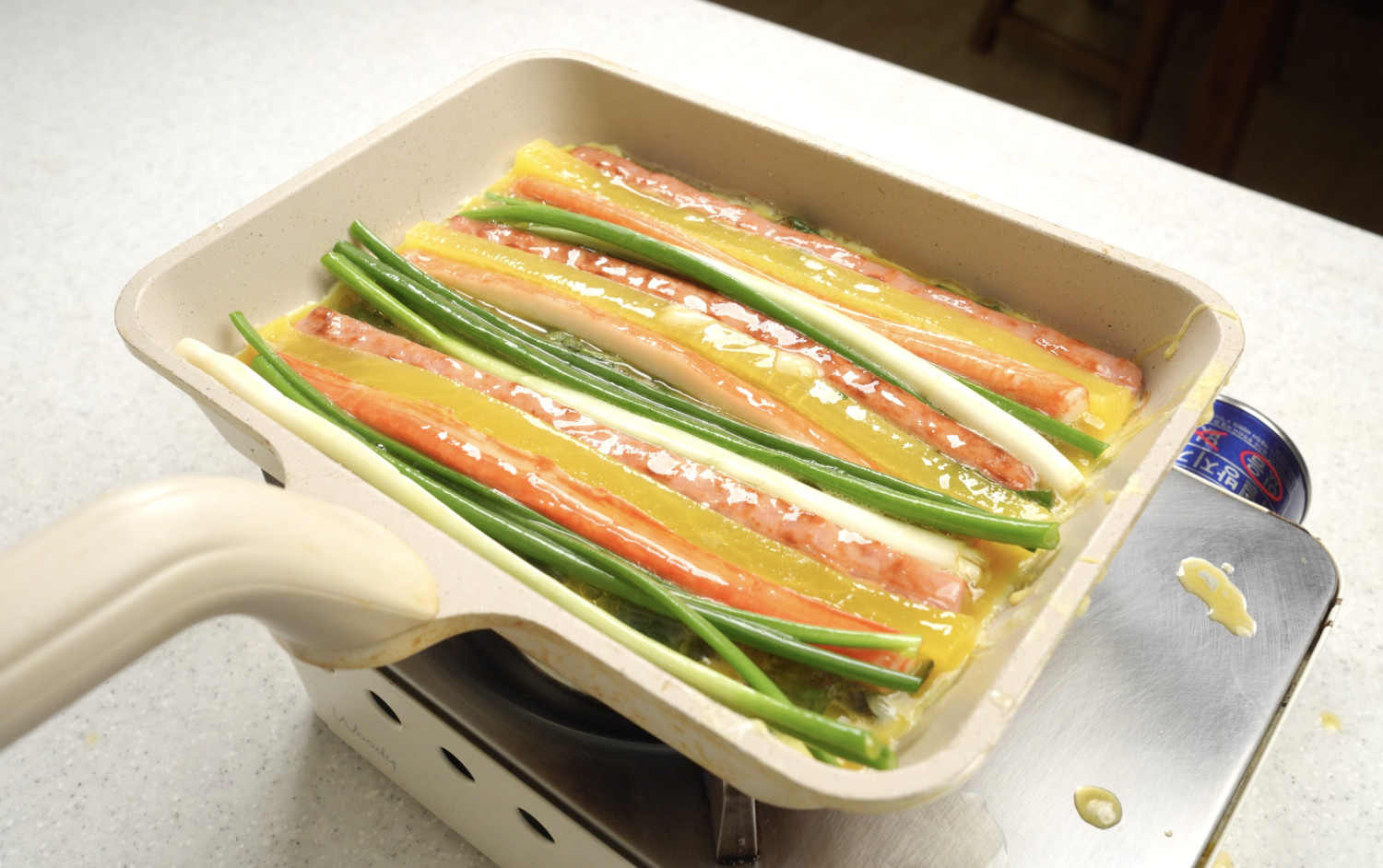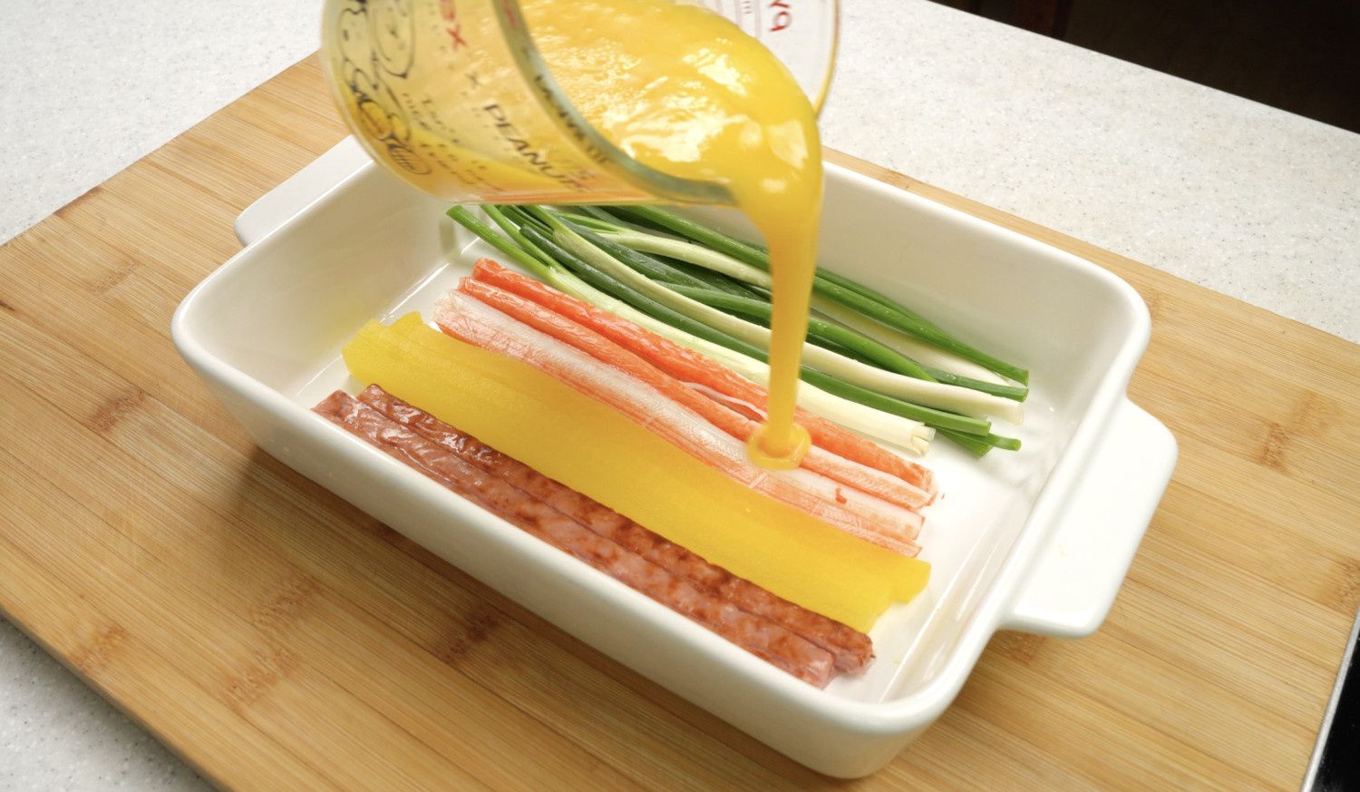 깻잎 6~7 장 , 맛살 2 줄 , 햄 3 줄 , 쪽파 3 줄 , 단무지 3 줄