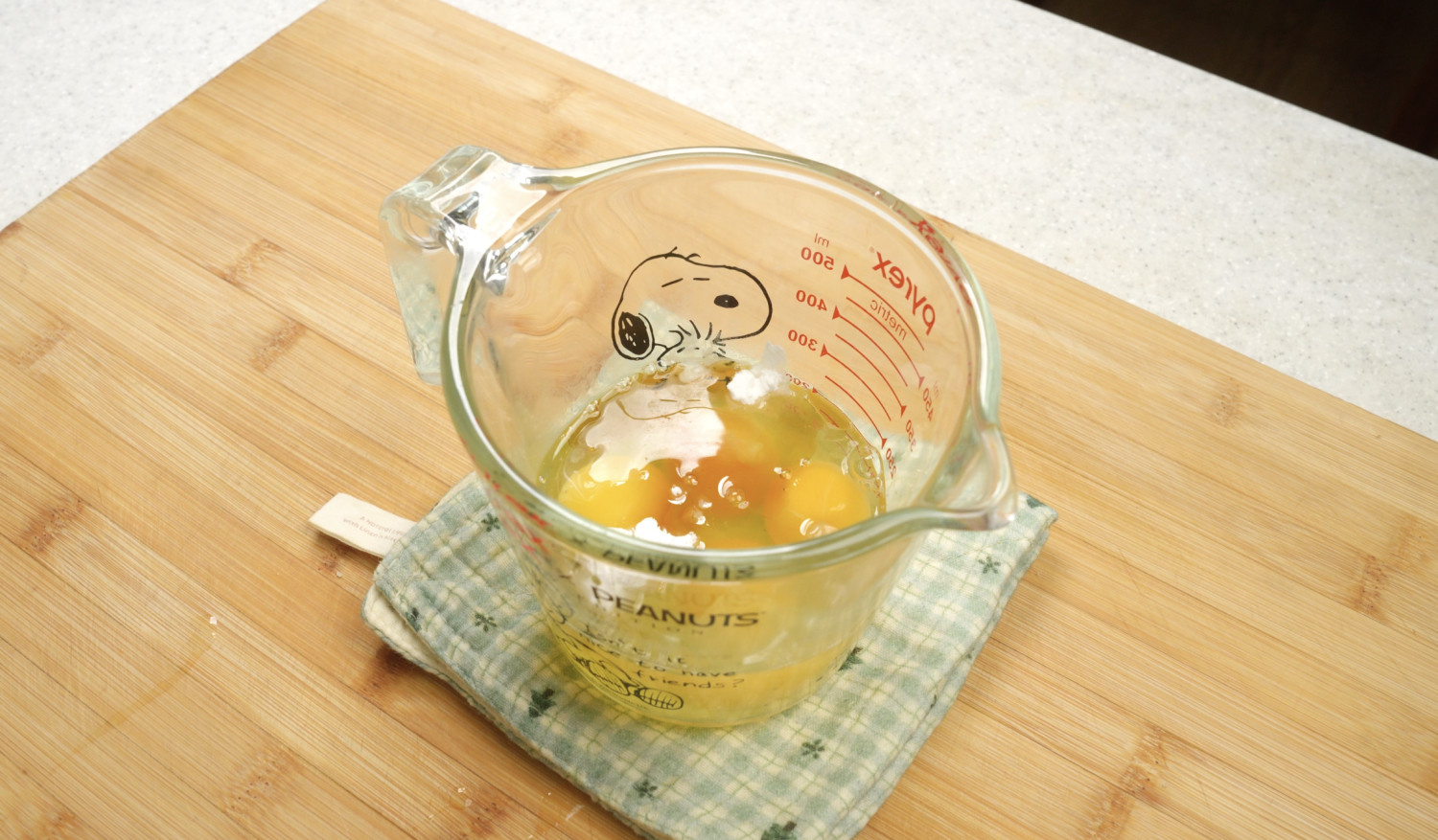 달걀 4 개 , 소금 1/3 작은술 , 전분가루 1/2 작은술 , 참기름 1 작은술