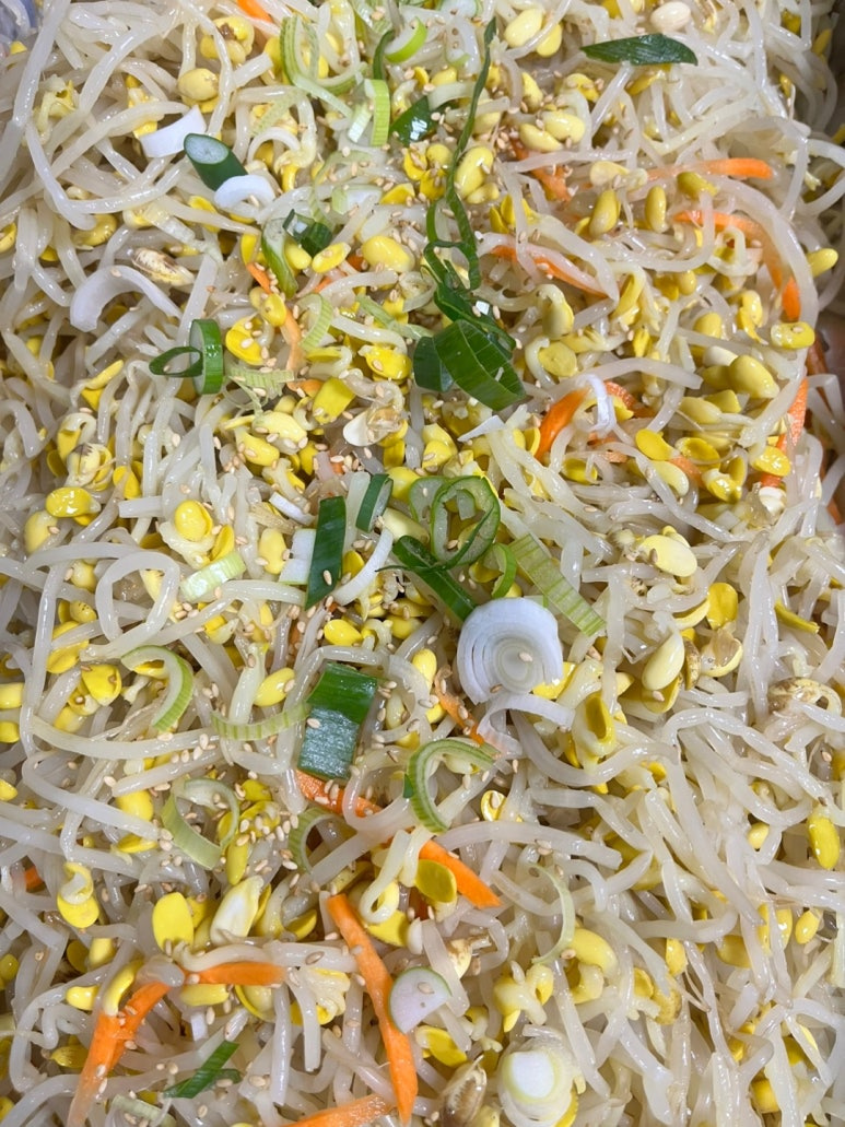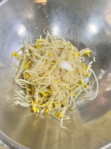 힘을 주어 팍팍 무치지 말고, 손끝으로 살살 버무리듯 무쳐야 콩나물이 숨이 죽지 않습니다.
