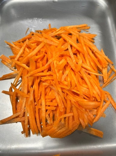 찬물에 바로 헹궈야 수분이 빠지지 않고 마지막까지 아삭한 식감이 유지됩니다. 너무 꽉 짜지 마세요!