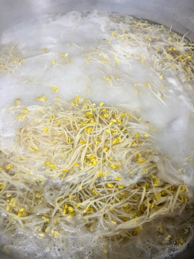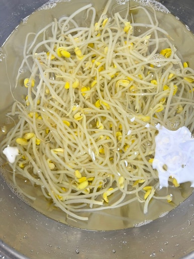 콩나물 익는 냄새가 나기 시작하면 1분 더 데친 후 바로 건져내세요. 이 타이밍이 가장 맛있게 익은 상태입니다.