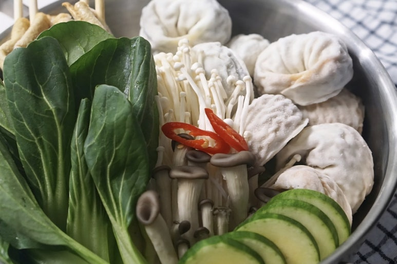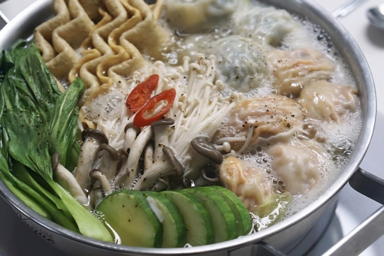 추운 날씨가 계속되면 자연스럽게 따뜻한 국물 요리가 떠오르잖아요. 밥 한 끼도 그냥 먹기보다는 국물 자작하게 끓여서 후루룩 먹고 싶은 요즘 같은 날은 만두전골이 딱인 것 같아요! 요즘처럼 따뜻한 국물이 필수인 날에 부담 없이 끓여 먹기 좋은 메뉴 버섯 듬뿍! 야채 듬뿍 넣은 맑은 만두전골 레시피 소개해 드릴게요 '◡'