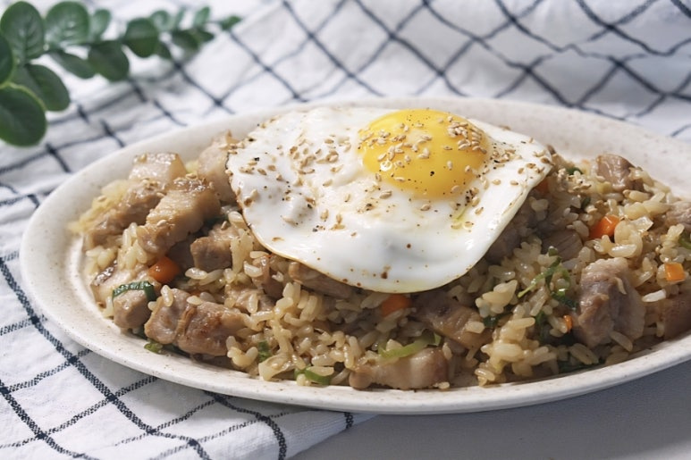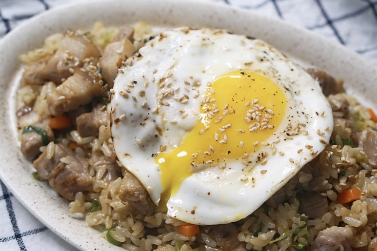 삼겹살이 애매하게 남아 있을 때가 종종 있죠. 그냥 구워 먹기엔 조금 아쉽고, 그렇다고 새로운 요리를 하자니 손도 많이 가고 번거롭구요. 그럴 때 가장 만만하면서도 실패 없는 메뉴가 바로 볶음밥이 아닐까 생각해요. 삼겹살볶음밥은 재료를 따로 준비할 게 거의 없이 집에 있는 자투리 채소만 추가해도 충분한 든든함이 느껴져서 주말 아침 냉털 요리로 손색이 없는 메뉴예요. 오늘은 한 그릇만으로도 든든한 한 끼를 채울 수 있는 냉털요리, 삼겹살 볶음밥 레시피 소개해 드릴게요 '◡'
