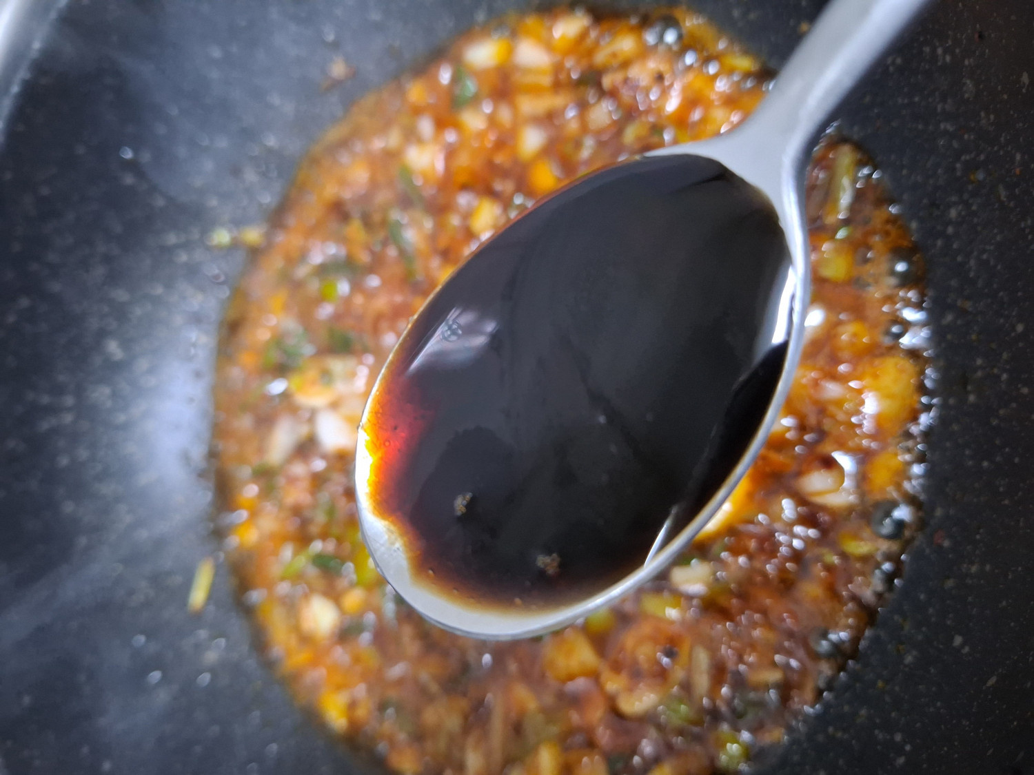 전분물을 넣고 30초정도만 빠르게 섞으면서 볶아주세요.