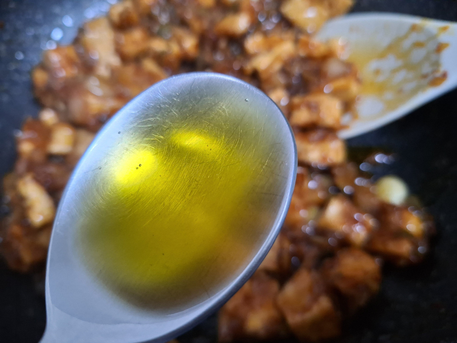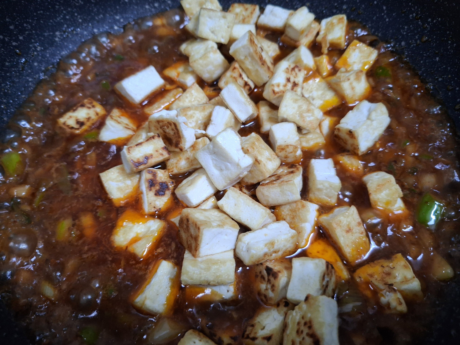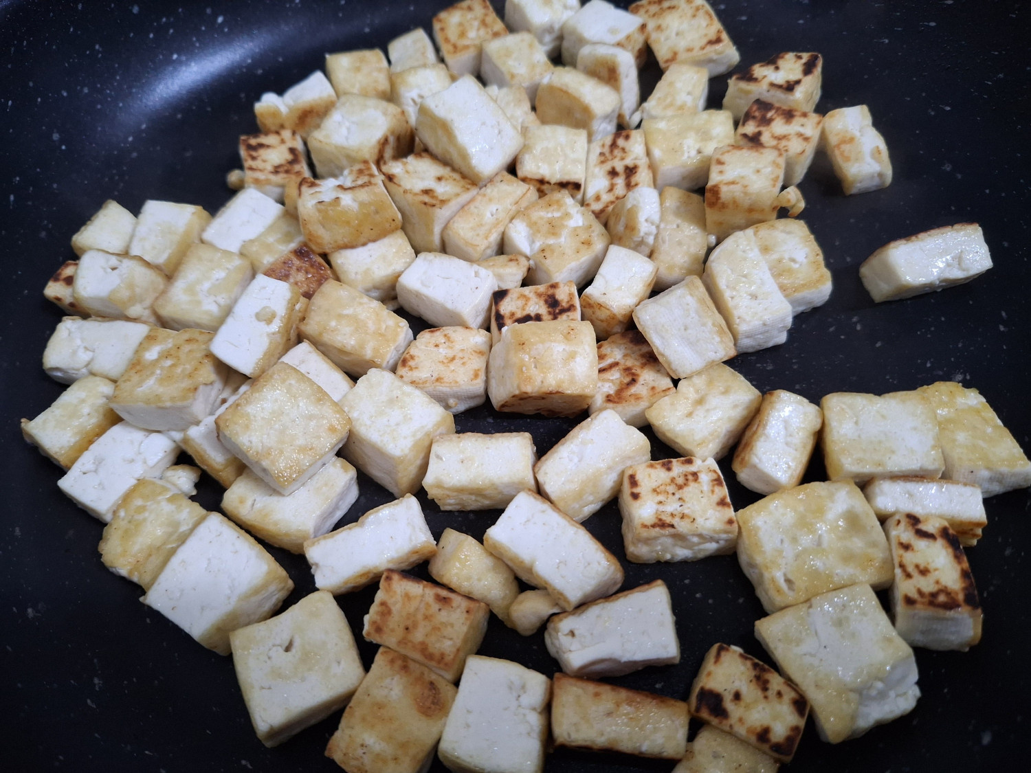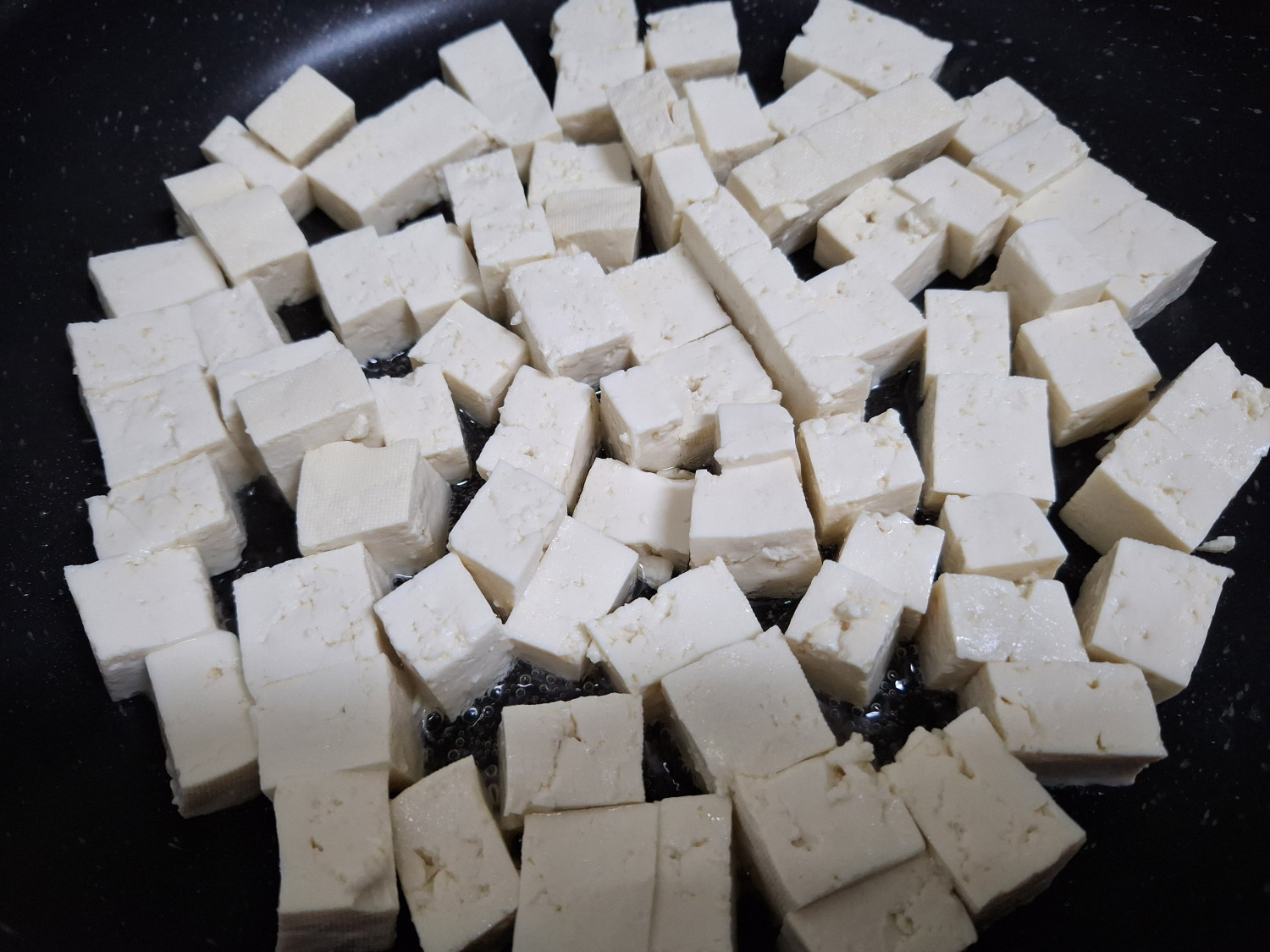 탈까봐 너무 약한불에서 조리하면 시간도 오래걸리고 색도 잘 안나니까 기름을 넉넉히 두르고 빠르게 색을 올려 두부를 튀기듯 구워주세요.
