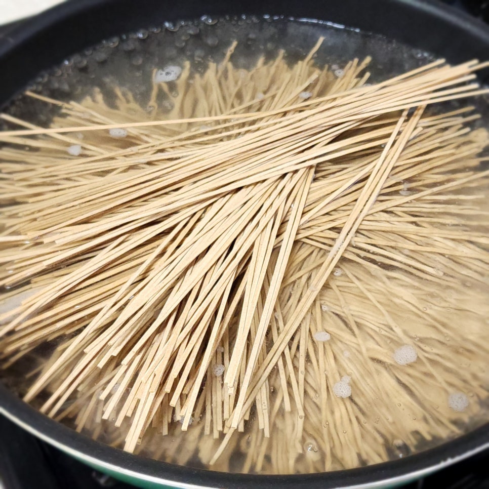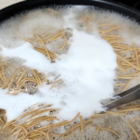 끓는 물에 메밀국수를 펼쳐서 넣어 주세요