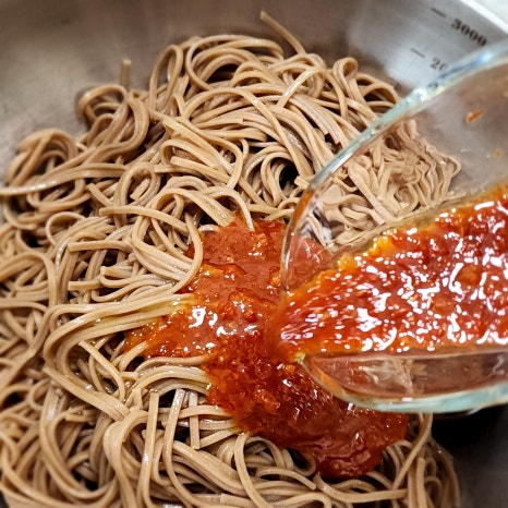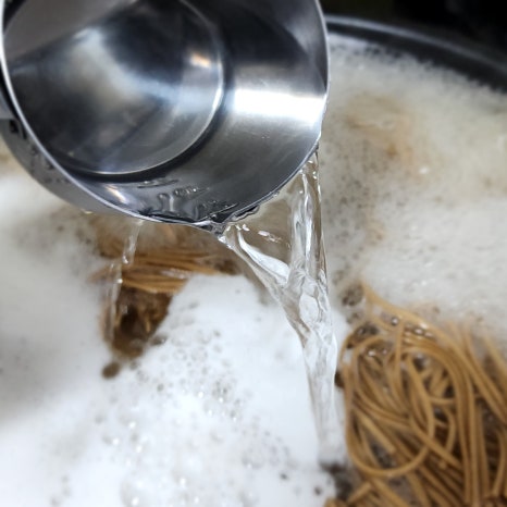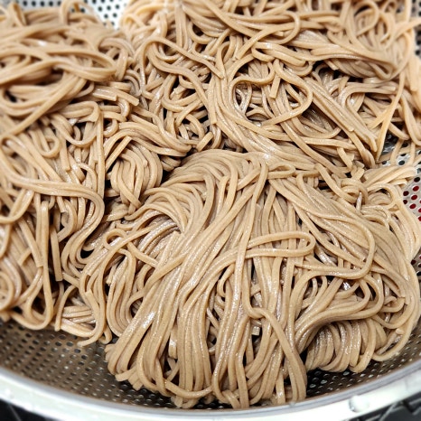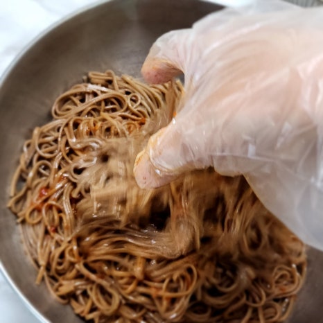 삶은 메밀국수는 얼른 차가운 물에 담가