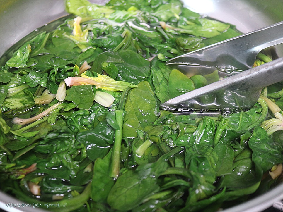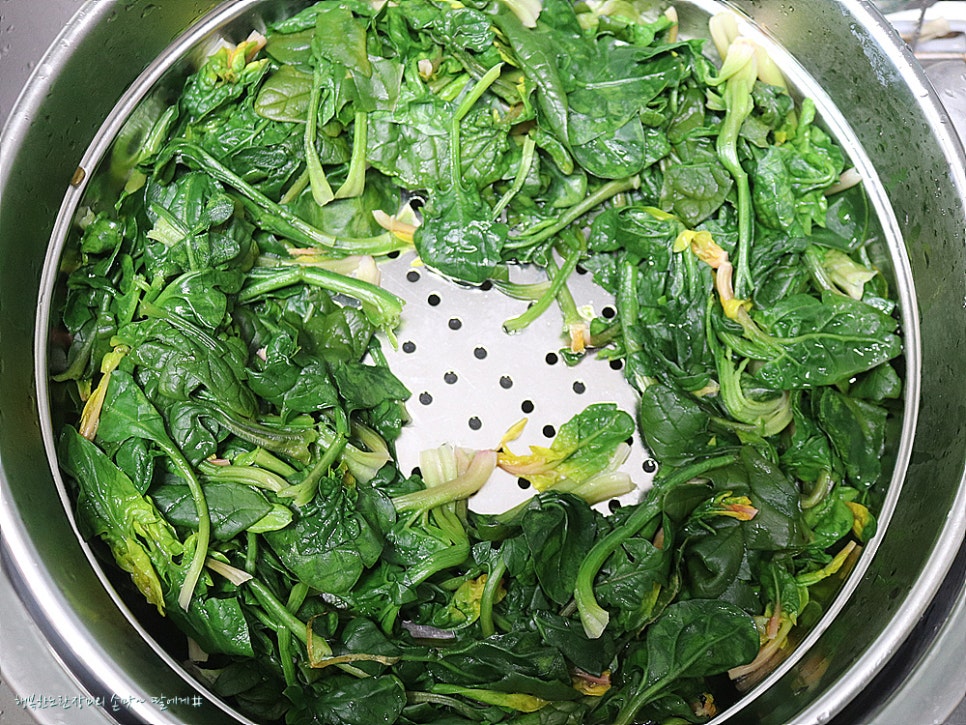 찬물에 헹구면 시금치의 맛이 빠지니깐요~