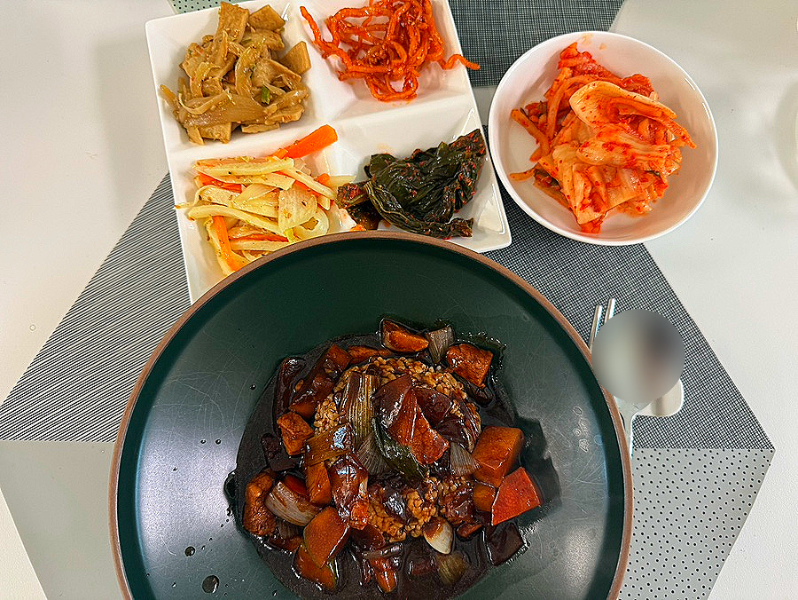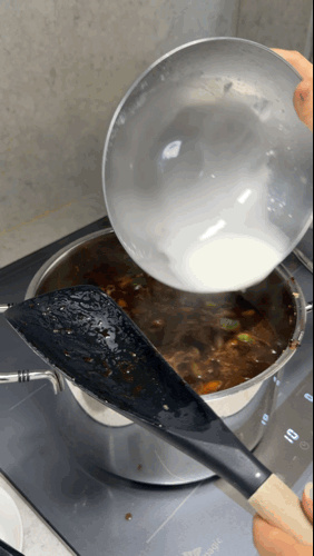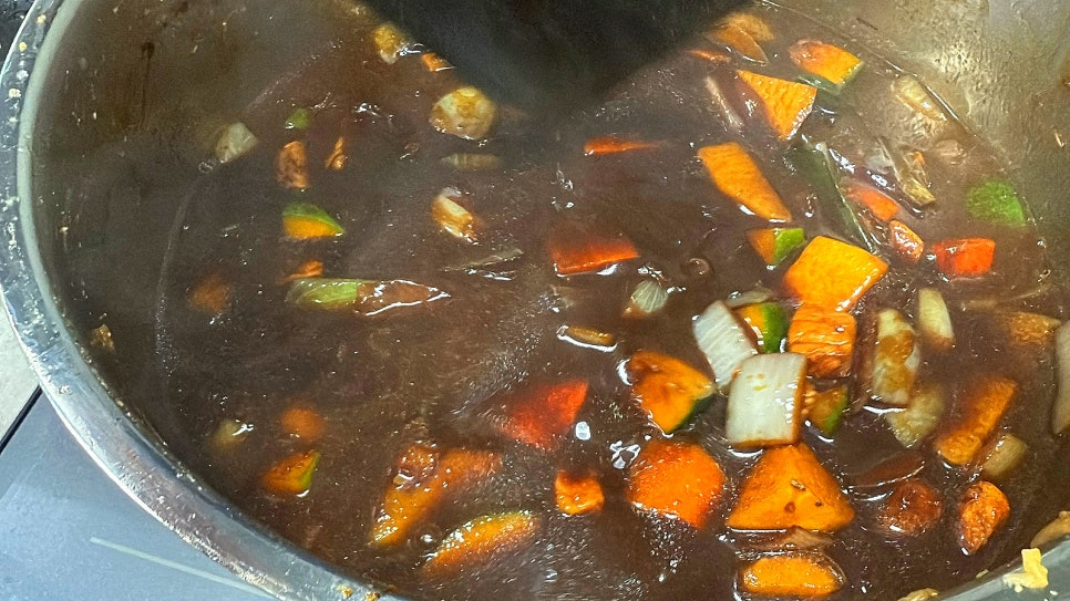 되직한 느낌을 위해 전분가루 2~3스푼 물에 풀어서 넣었어요.