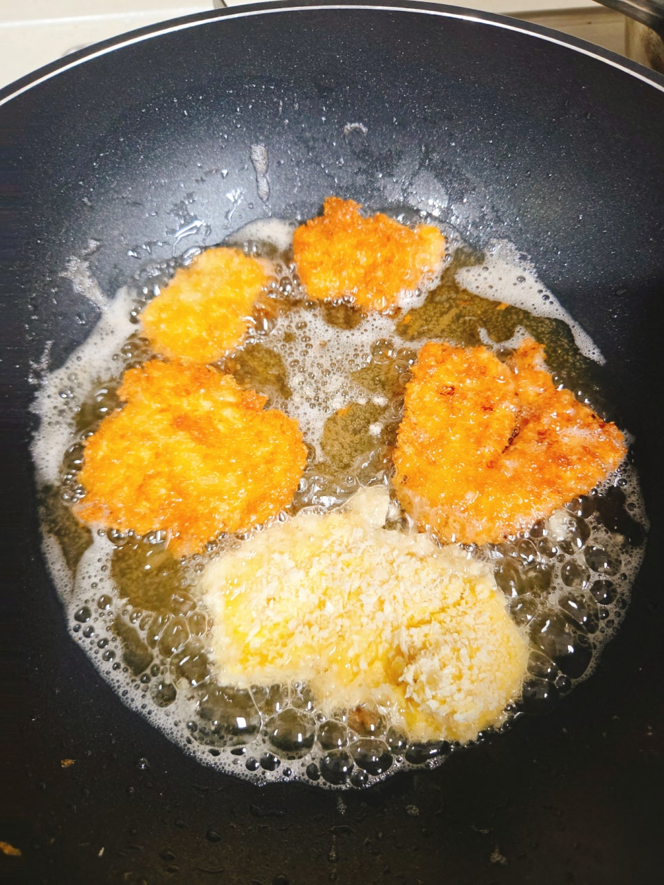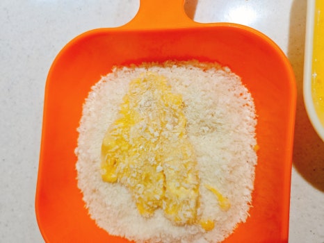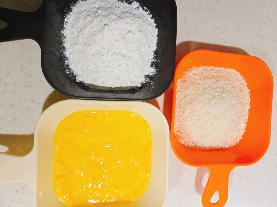 튀김가루, 계란, 빵가루 순으로 묻혀주세요