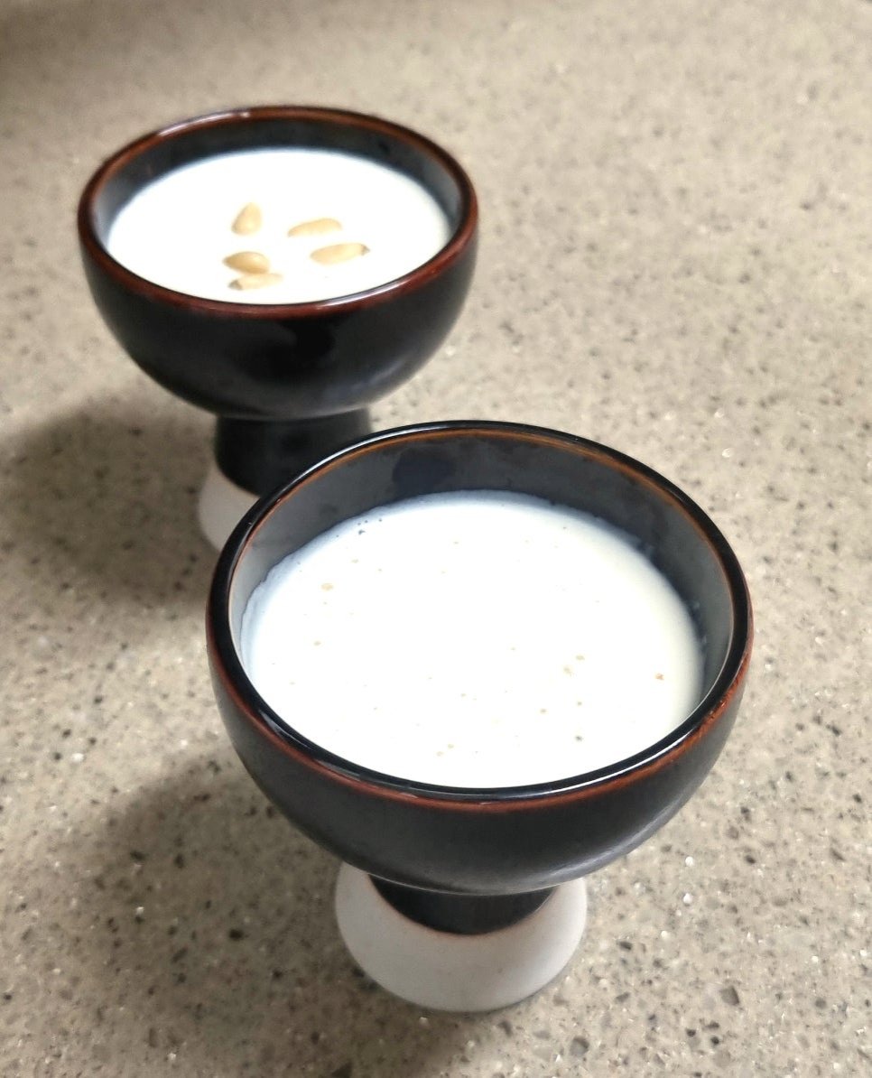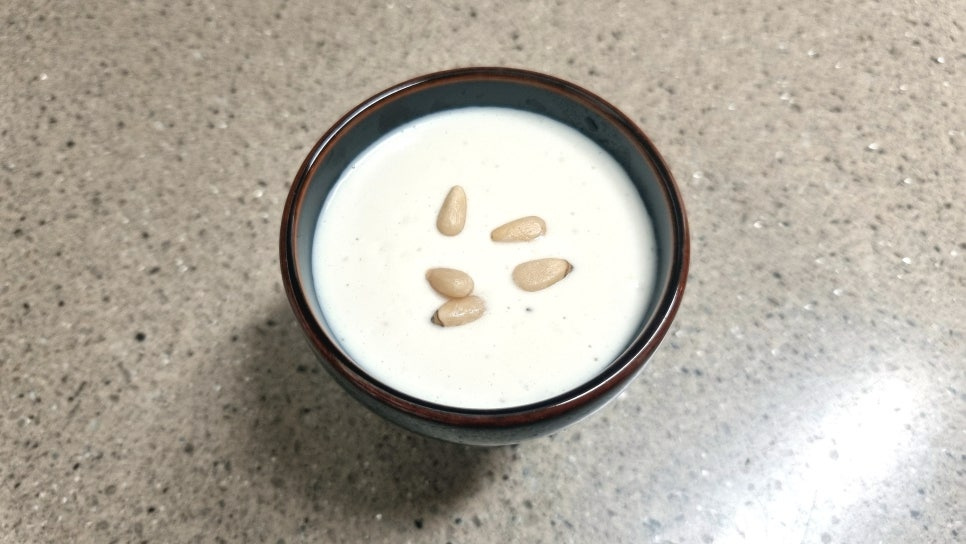 순두부와 잣이 곱게 갈려서 크림처럼 변할 때까지