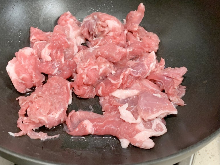잘 볶다가 돼지고기가 다 익었다면 가장 마지막으로