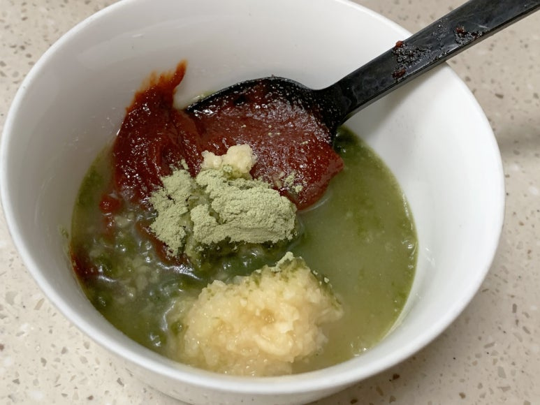 고추장, 레몬즙, 대파가루, 다진마늘, 생강액을 넣어 줍니다.