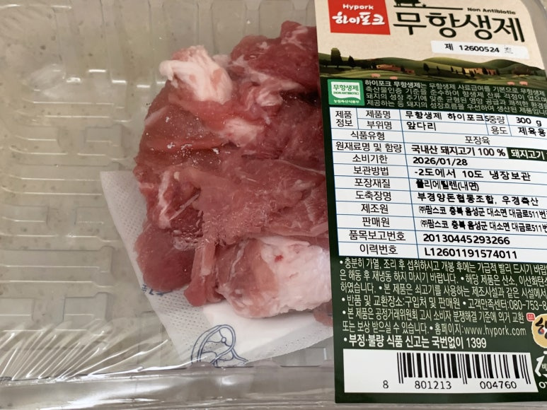 제육용 돼지고기입니다.