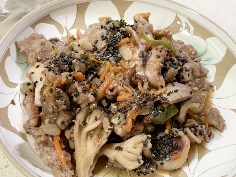 그런 간장낙지제육볶음이 완성되었습니다.