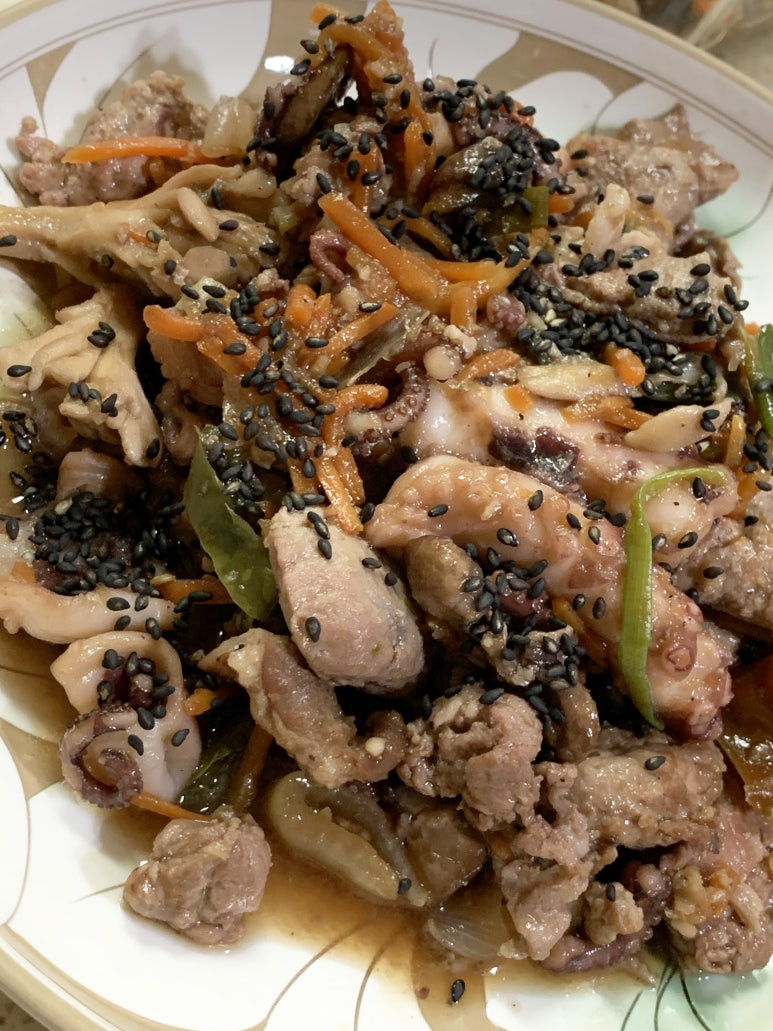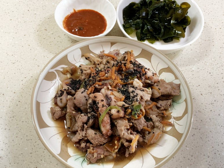 쫄깃한 식감의 낙지와 부드러운 돼지고기의 만남.
