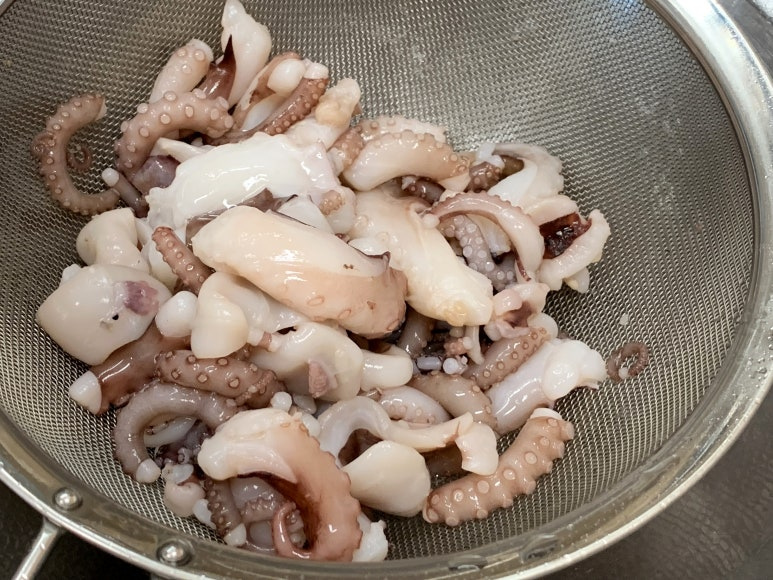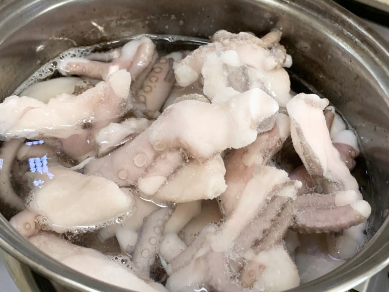 팔팔 끓은 물에 낙지를 살짝만 데쳐 줍니다.