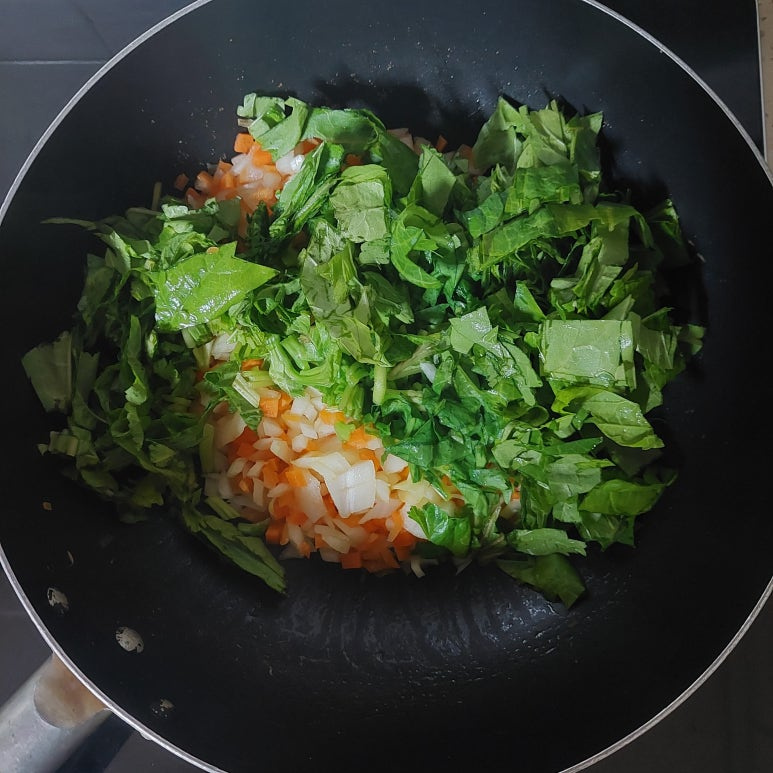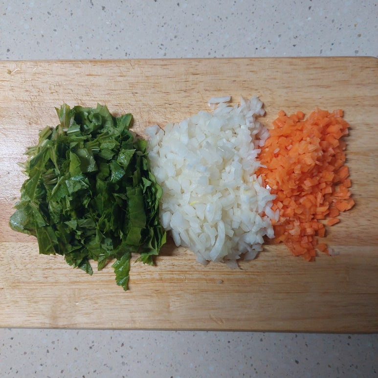 아욱 1/2단, 양파 1/2개, 당근 1/2개