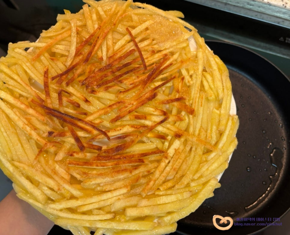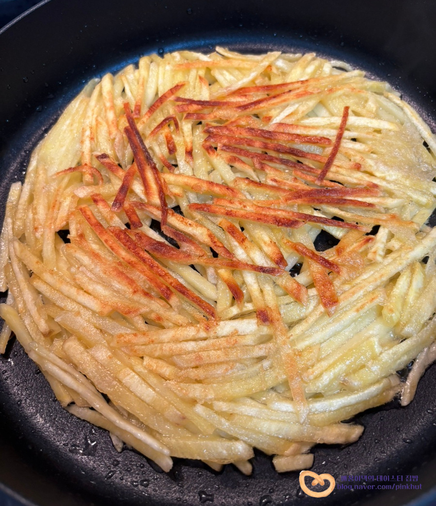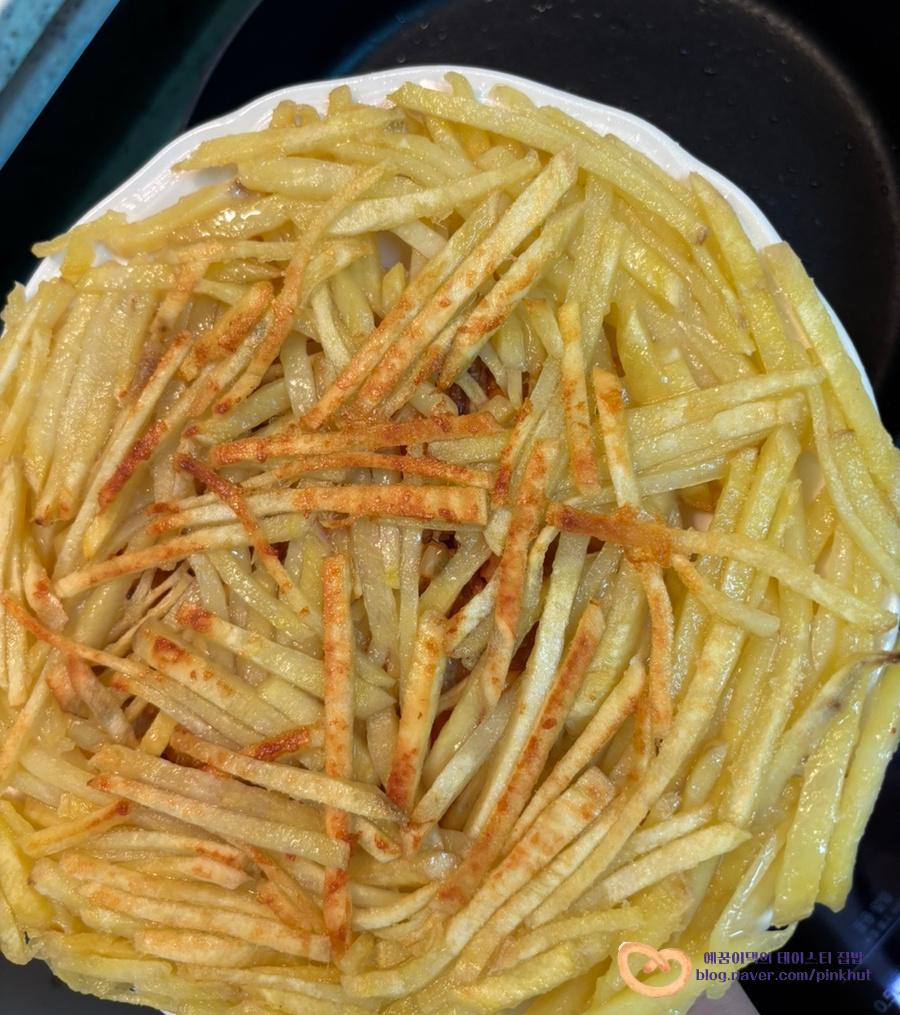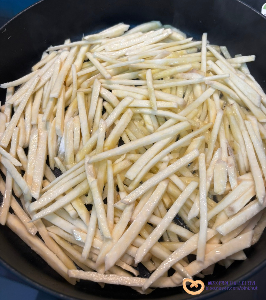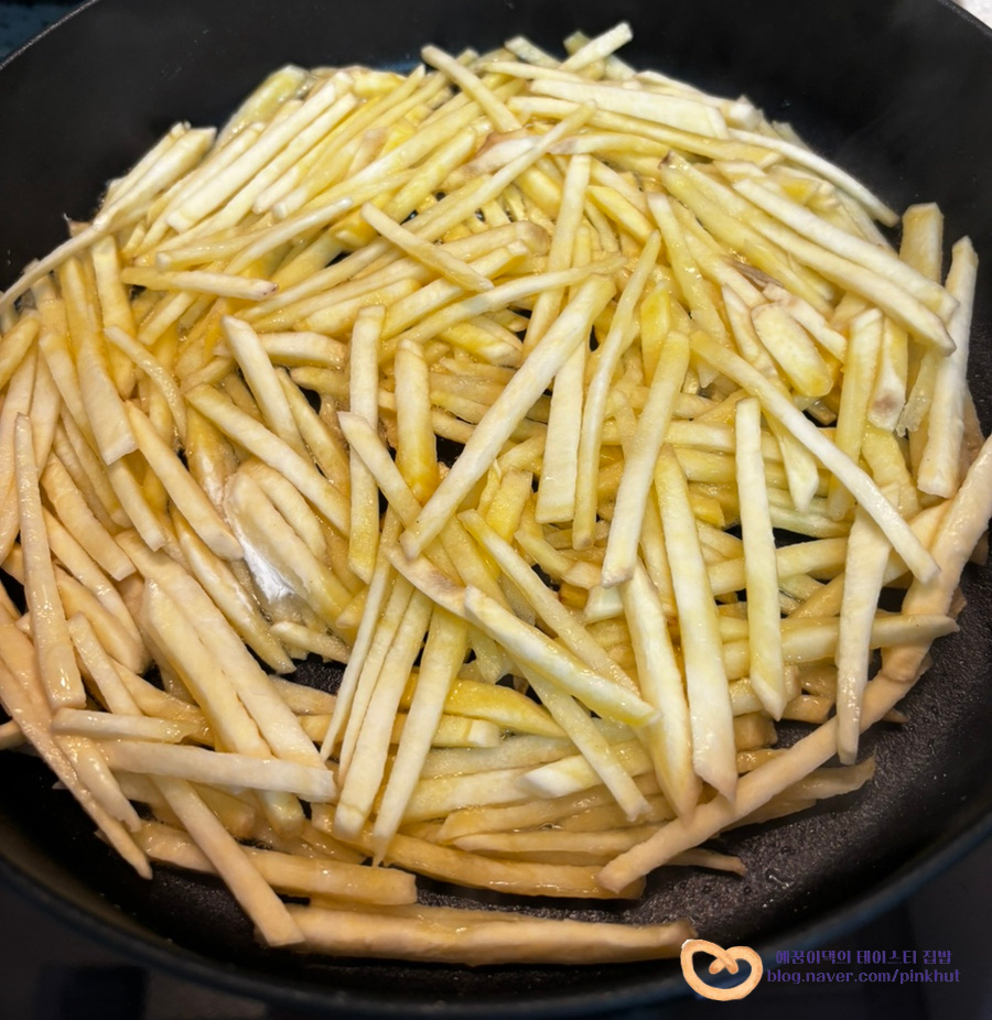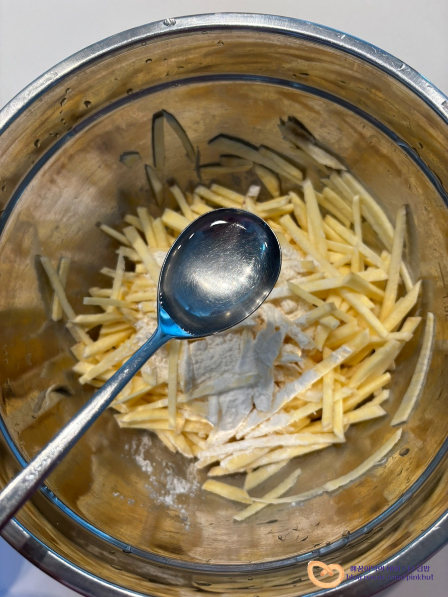 기름을 전체적으로 골고루 입혀주어야 바삭함이 살아나요. 식용유가 부족할 때는 추가해서 넣어주셔도 좋아요